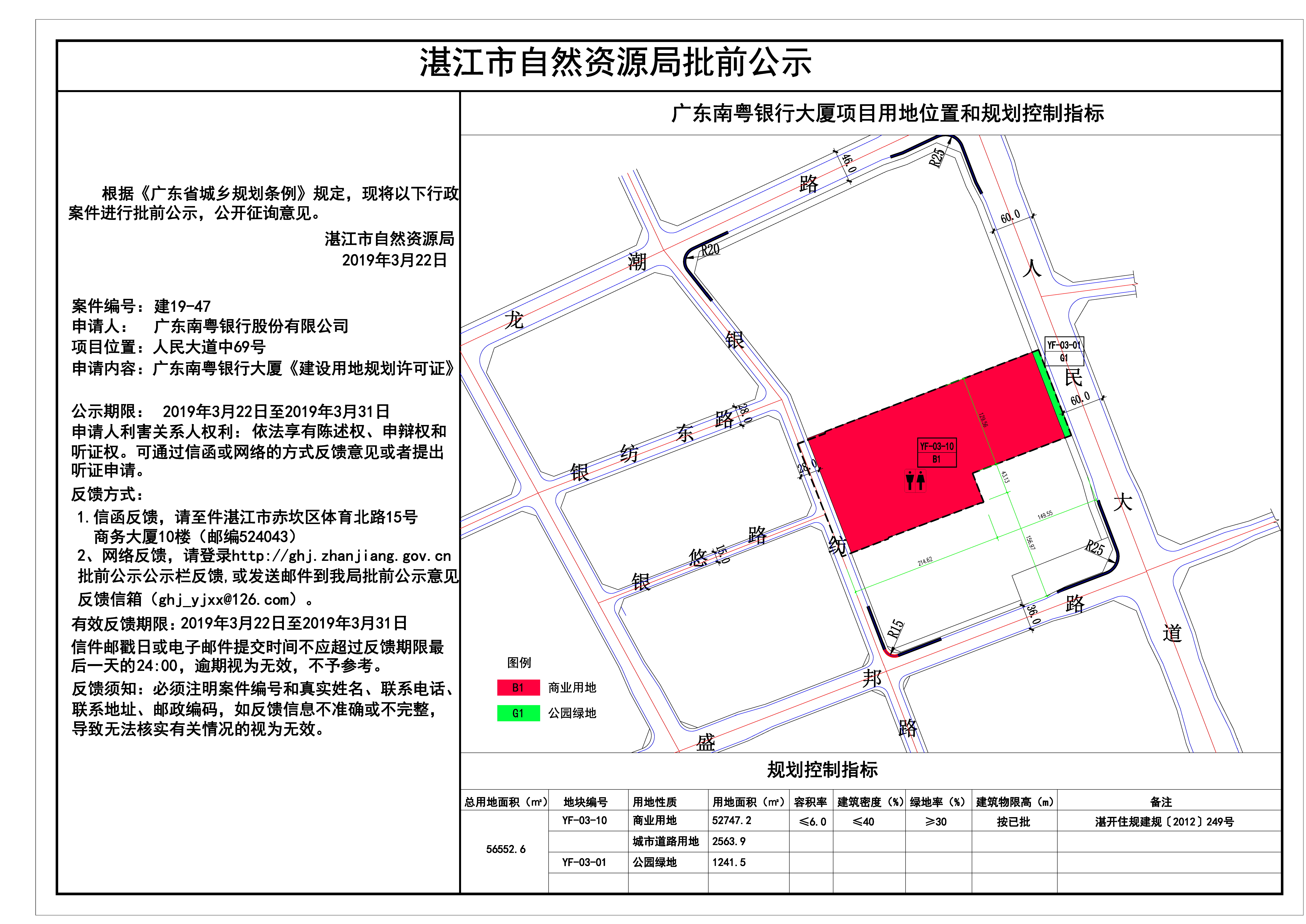 广东南粤银行大厦《建设用地规划许可证》批前公示