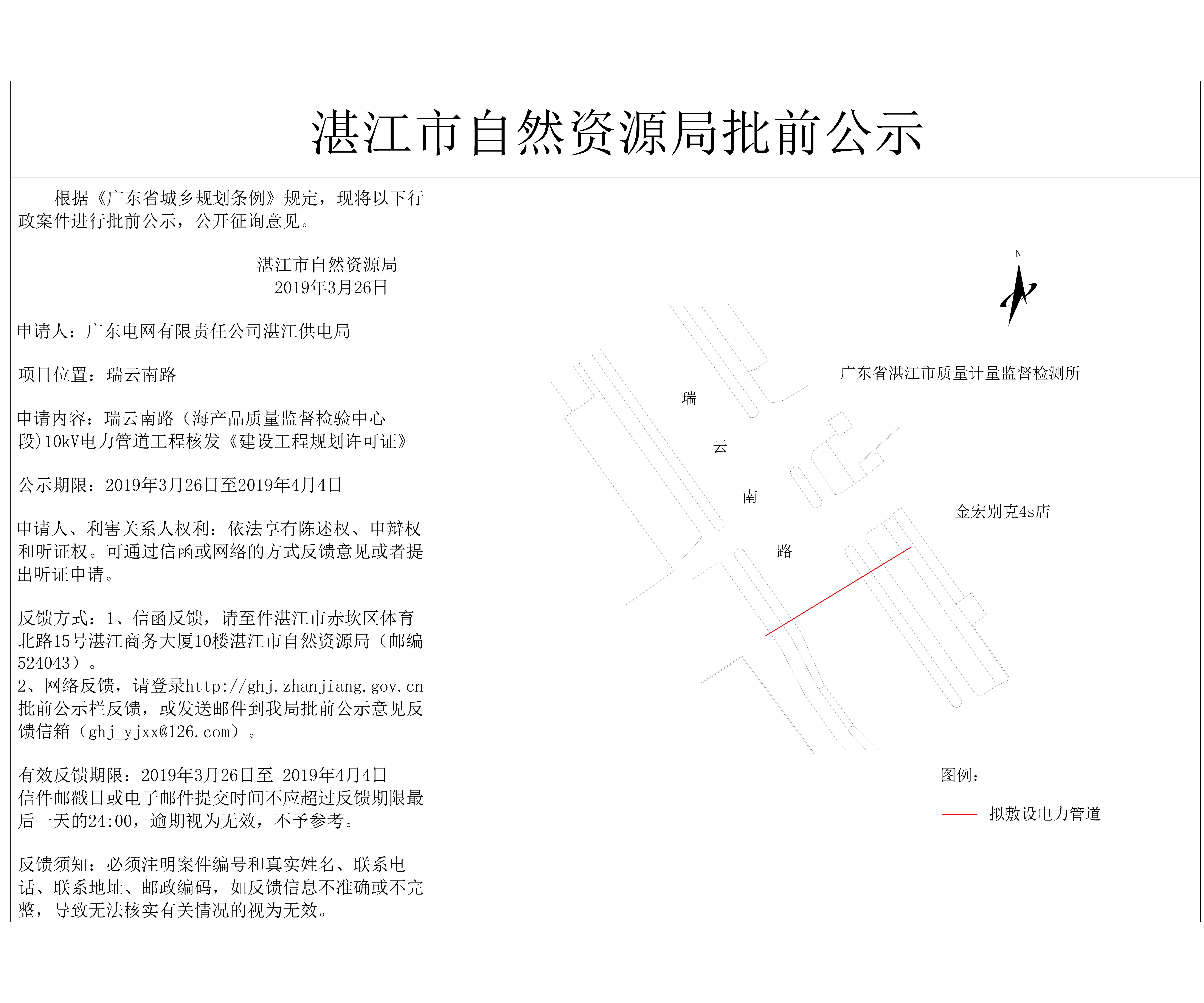 瑞云南路(海产品质量监督检验中心段)10kv电力管道工程核发《建设工程规划许可证》批前公示