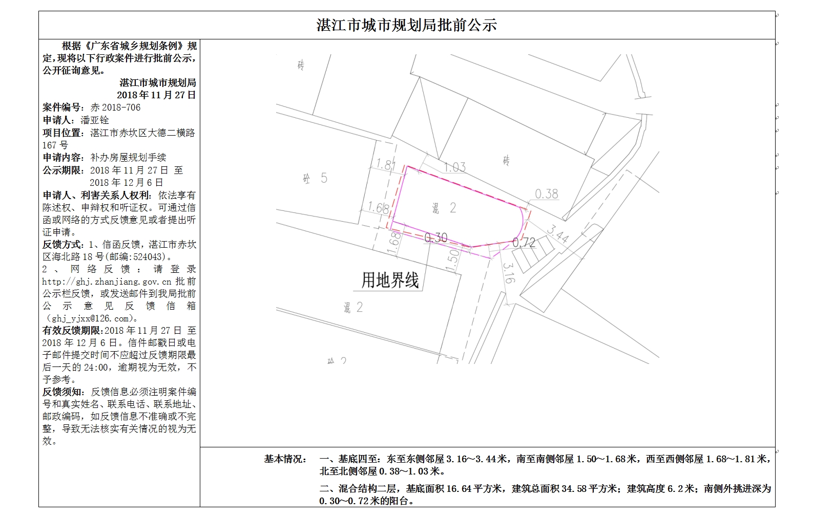 (潘亚铨)补办房屋规划手续批前公示