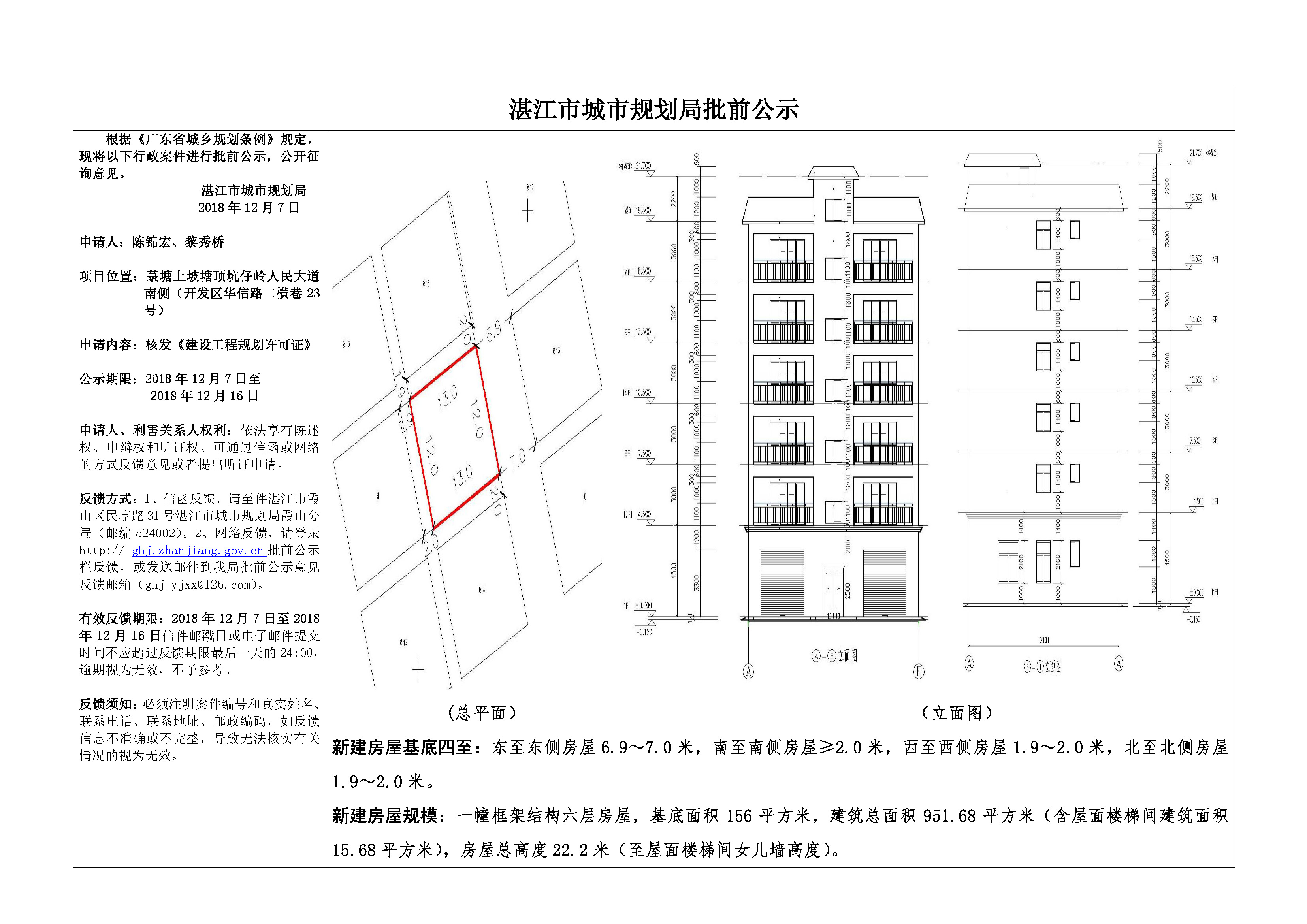 (陈锦宏、黎秀桥)核发《建设工程规划许可证》批前公示