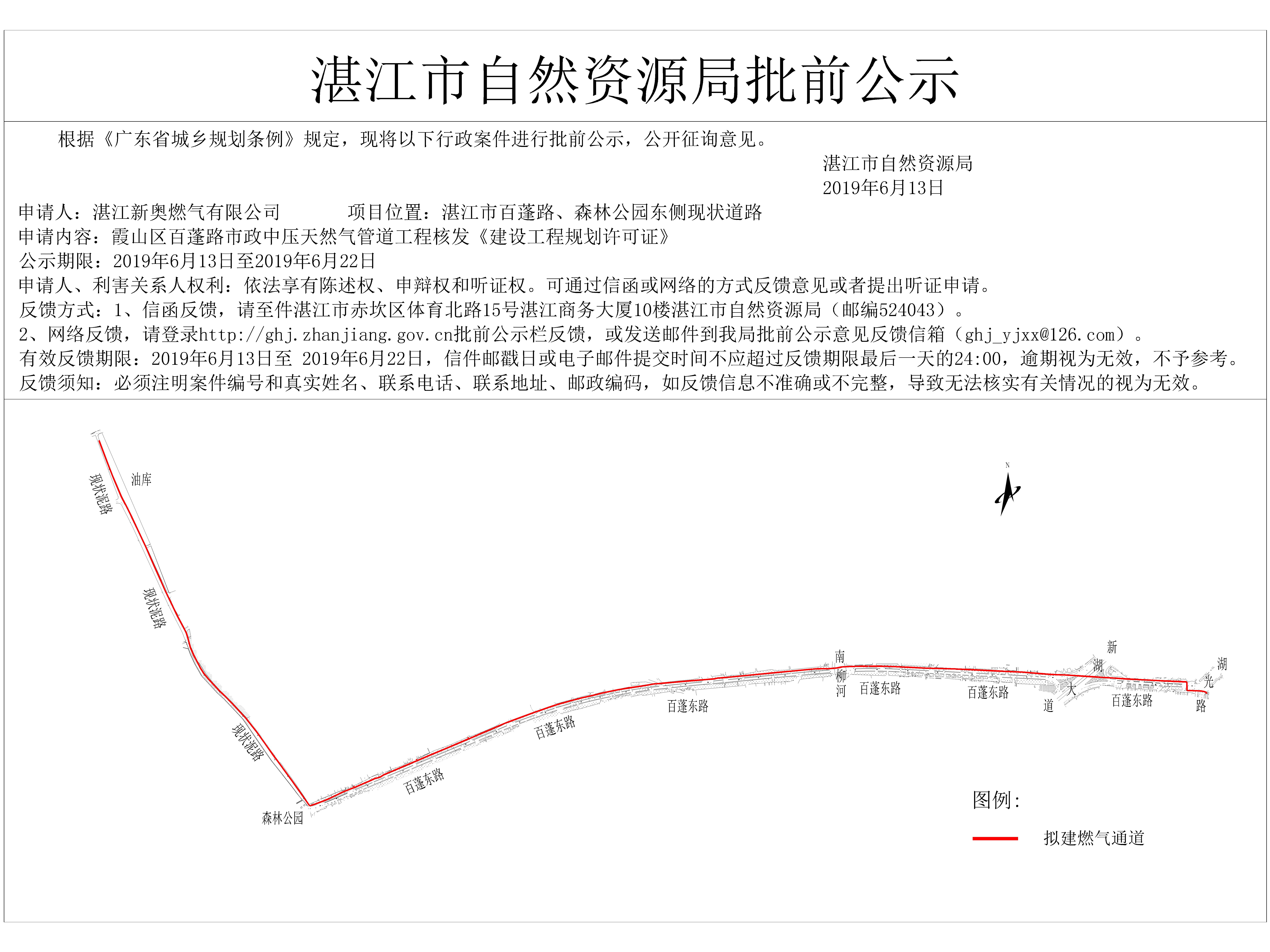霞山区百蓬路市政中压天然气管道工程核发《建设工程规划许可证》批前公示