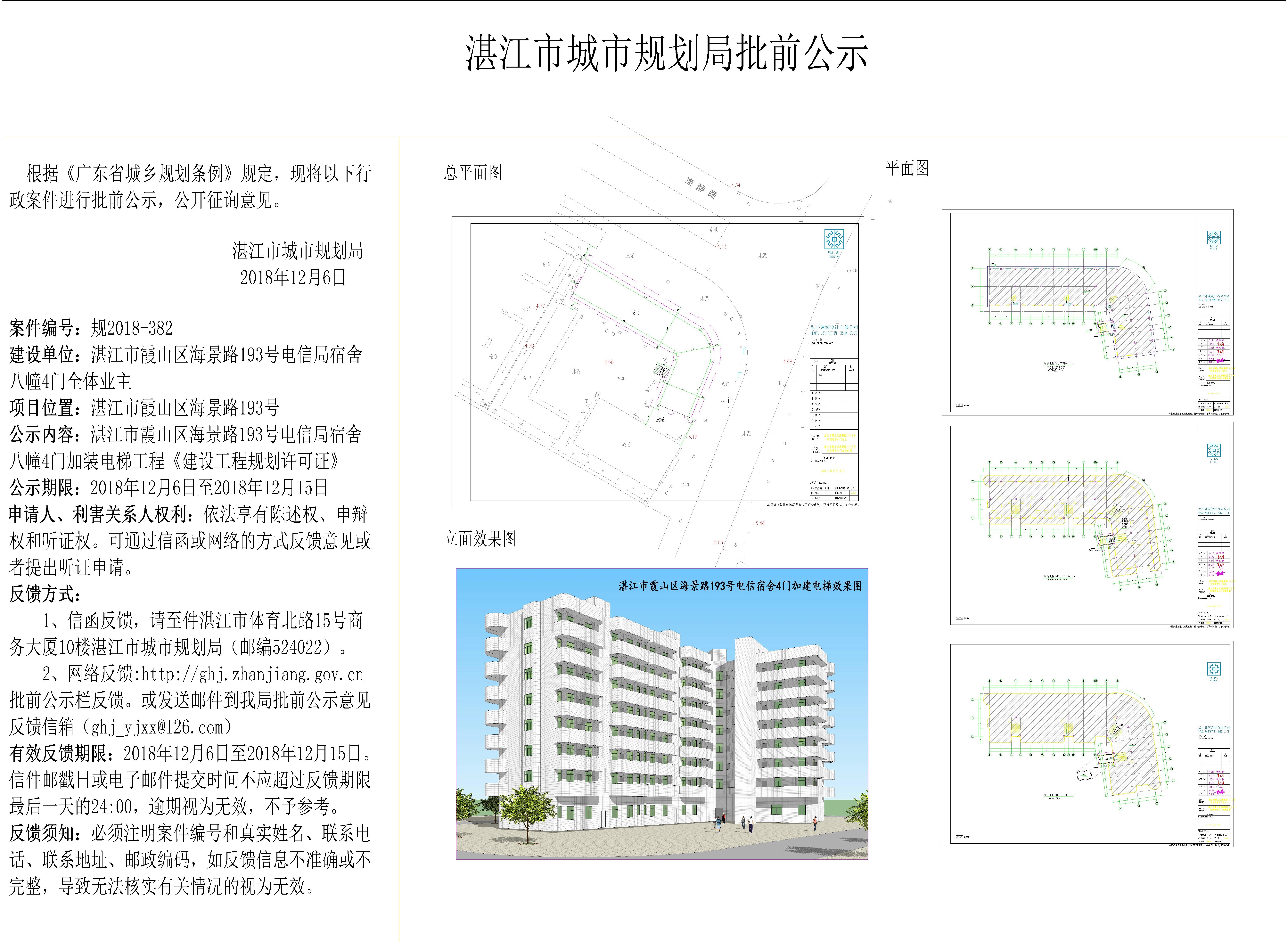 湛江市霞山区海景路193号电信局宿舍八幢4门加装电梯工程《建设工程规划许可证》批前公示