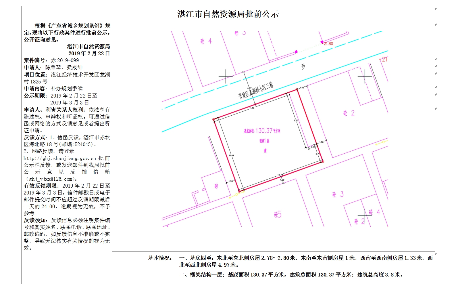 (陈荣琴、梁成坤)补办规划手续批前公示