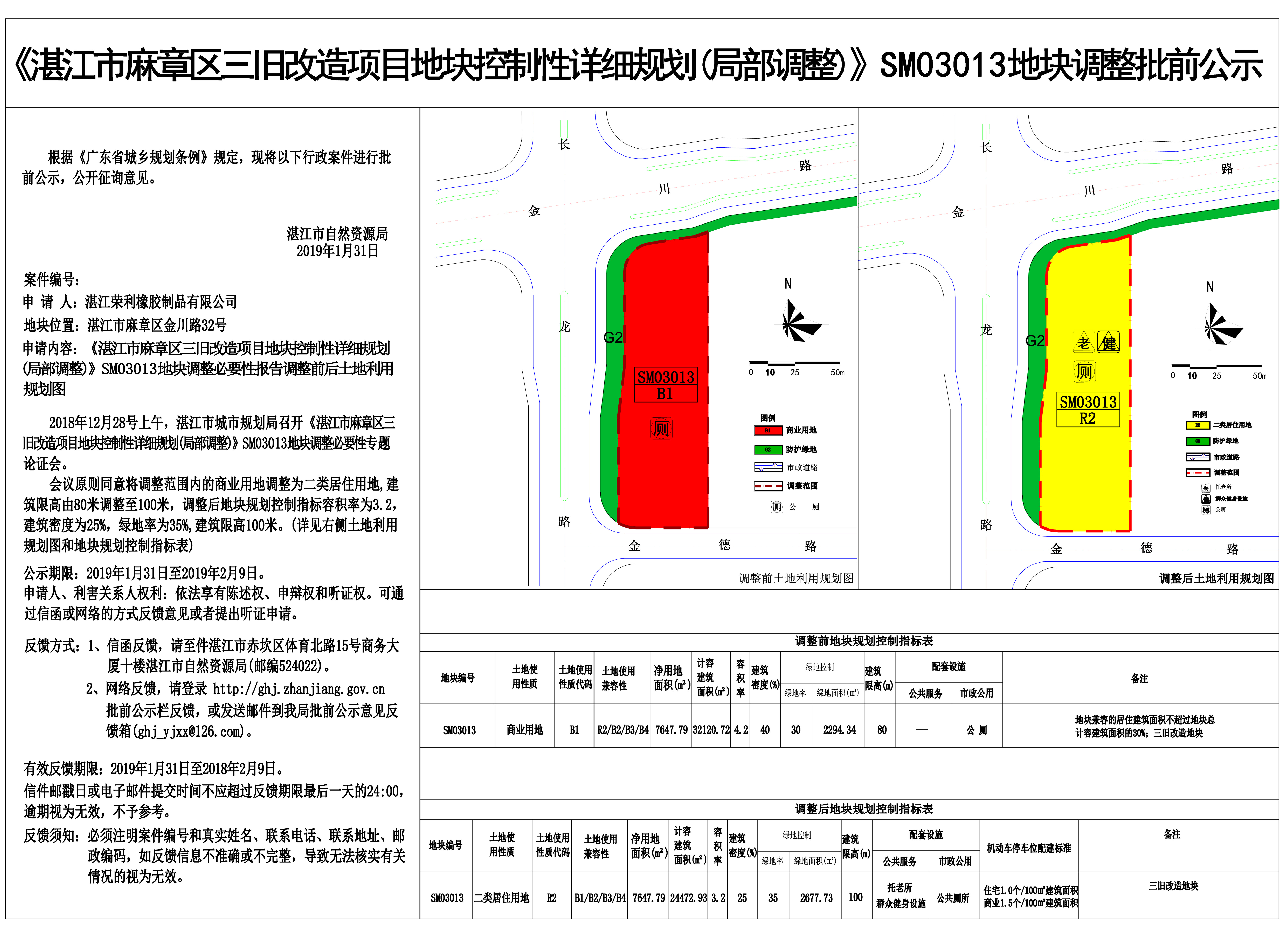 《湛江市麻章区三旧改造项目地块控制性详细规划(局部调整)》SM03013地块调整批前公示