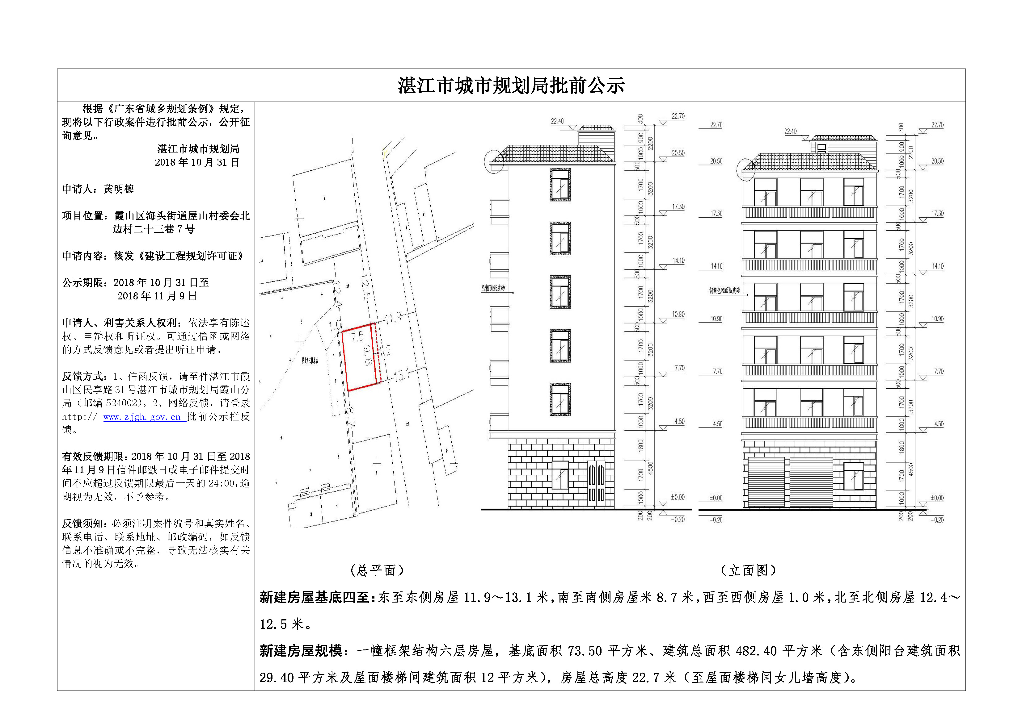 (黄明德)核发《建设工程规划许可证》批前公示