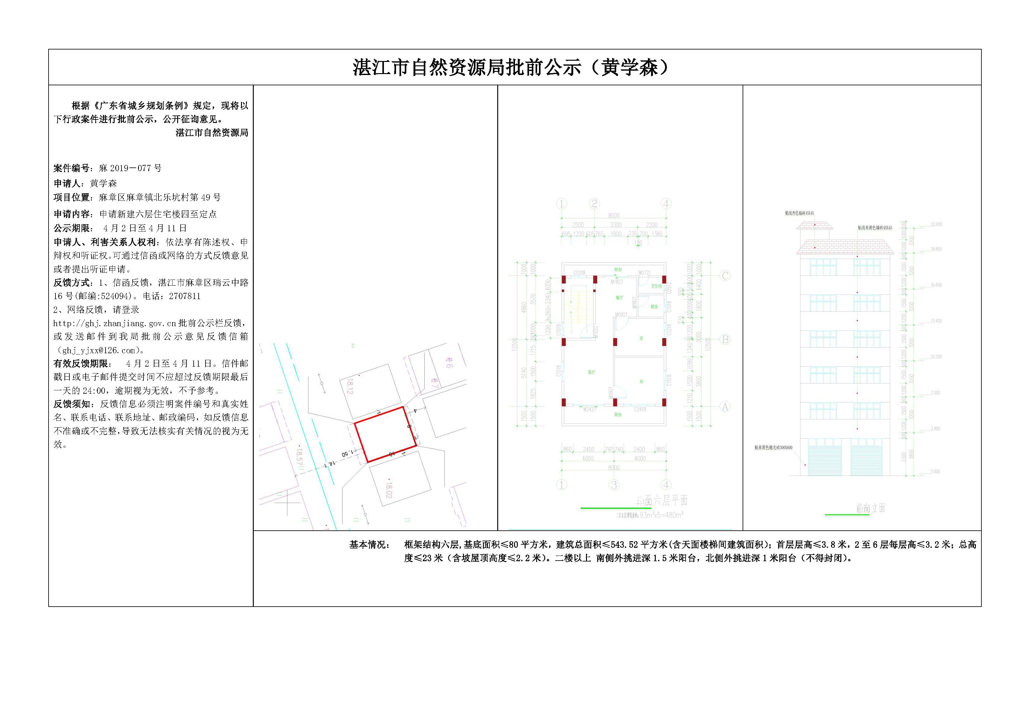 (黄学森)申请新建六层住宅楼四至定点批前公示