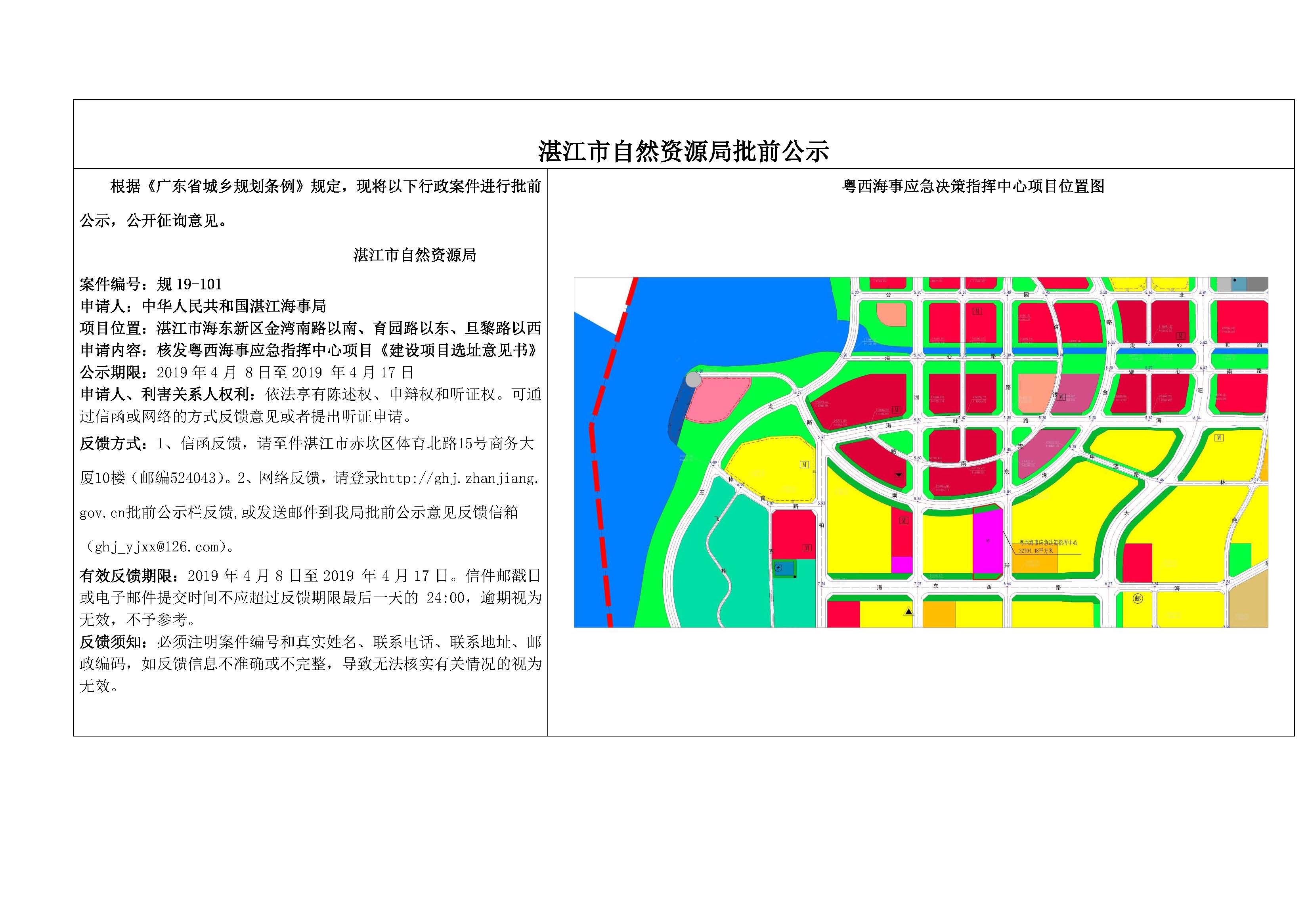 核发粤西海事应急指挥中心项目《建设项目选址意见书》批前公示