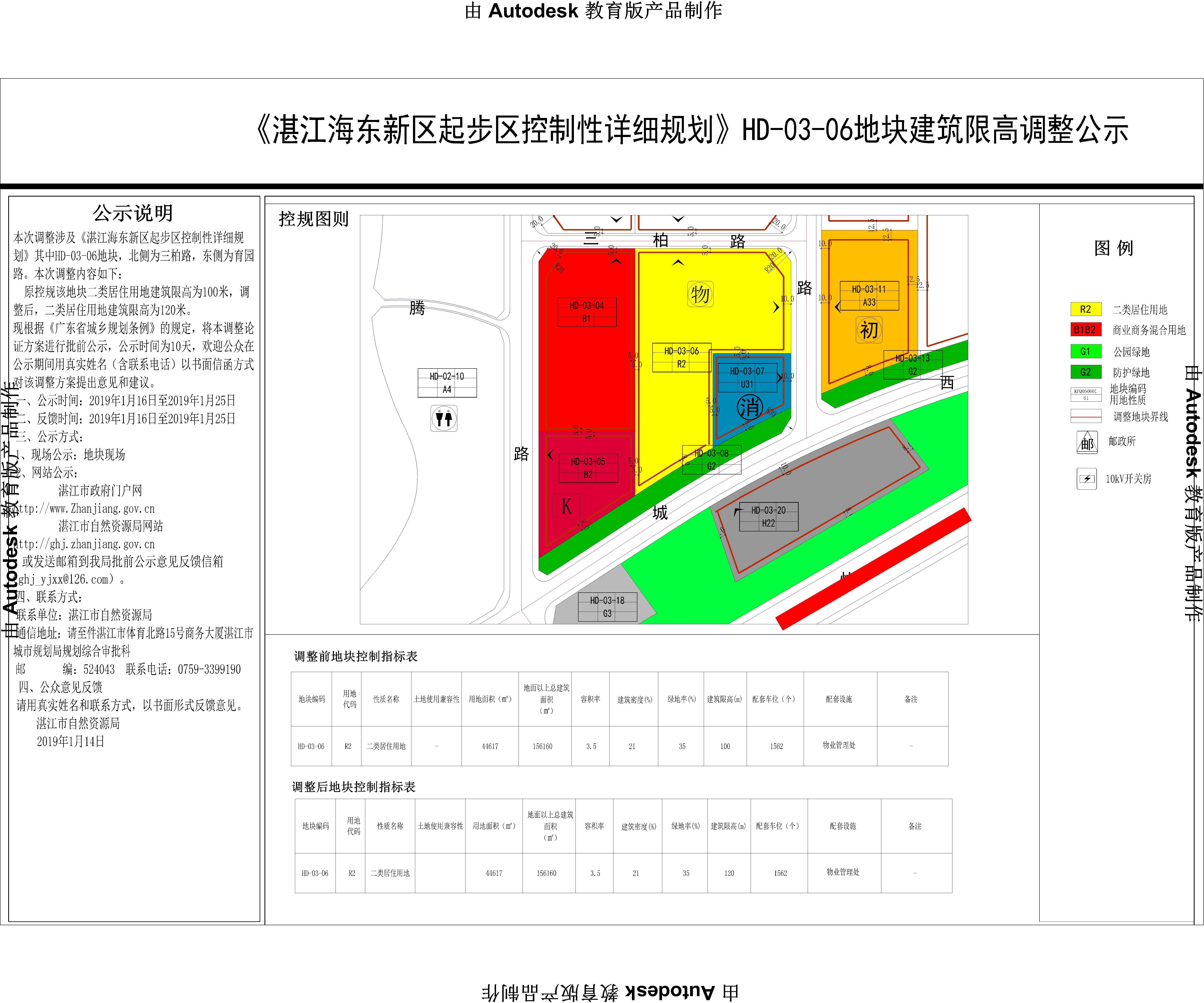 《湛江海东新区起步区控制性详细规划》HD-03-06地块建筑限高调整公示批前公示