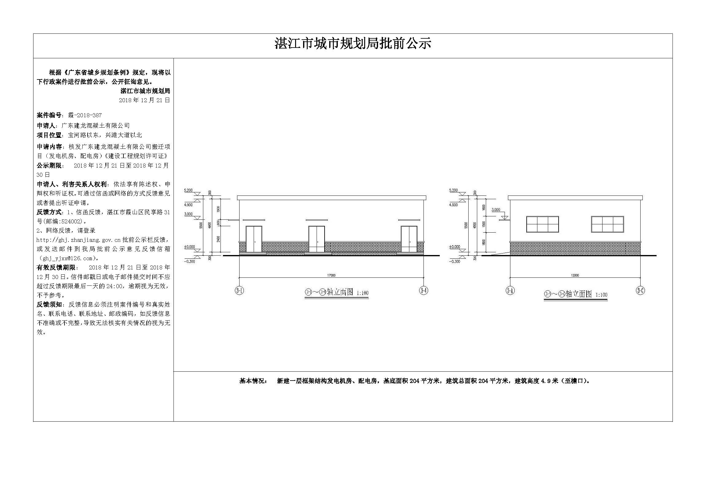 核发广东建龙混凝土有限公司搬迁项目(发电机房、配电房)《建设工程规划许可证》批前公示
