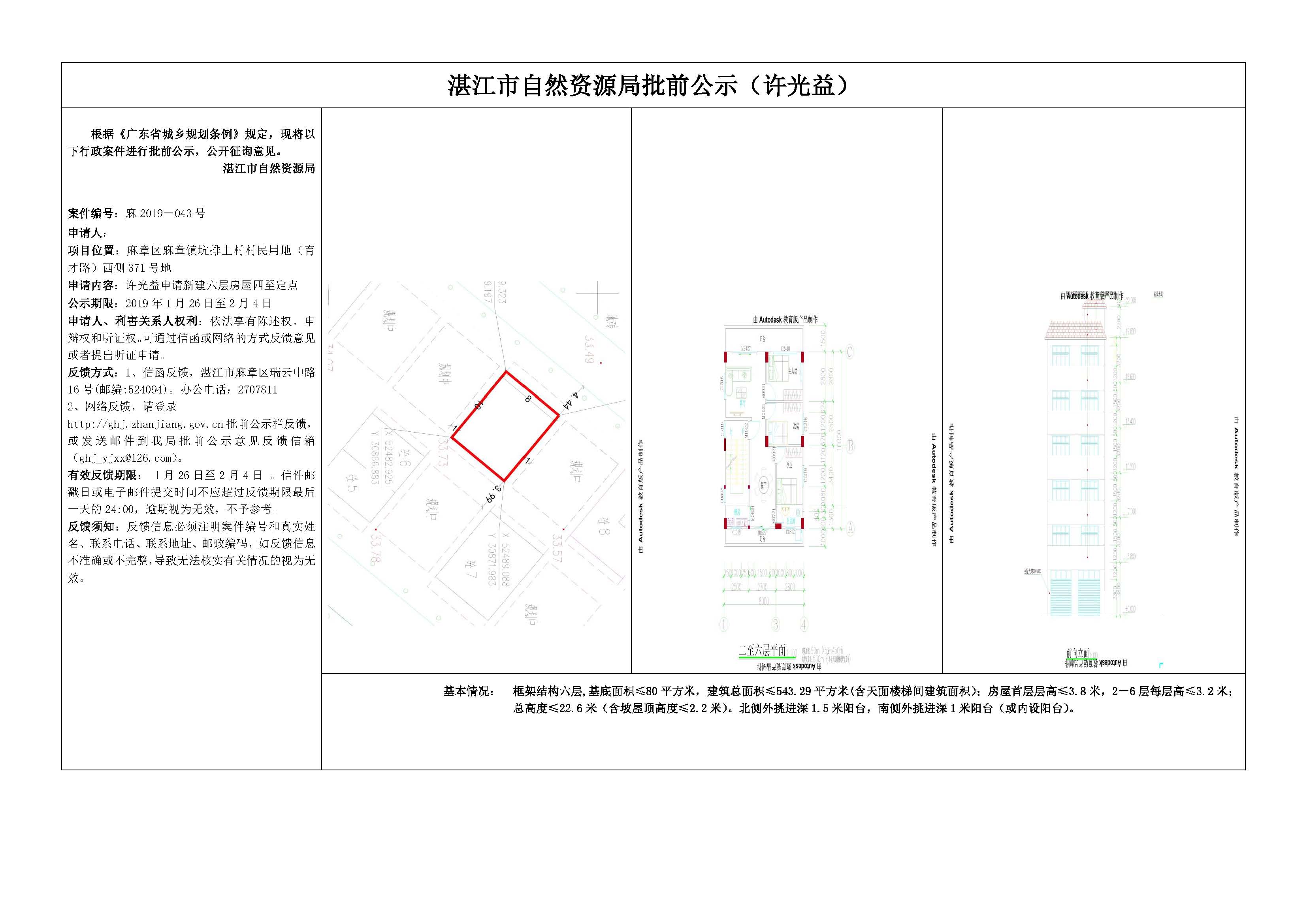 许光益申请新建六层房屋四至定点批前公示