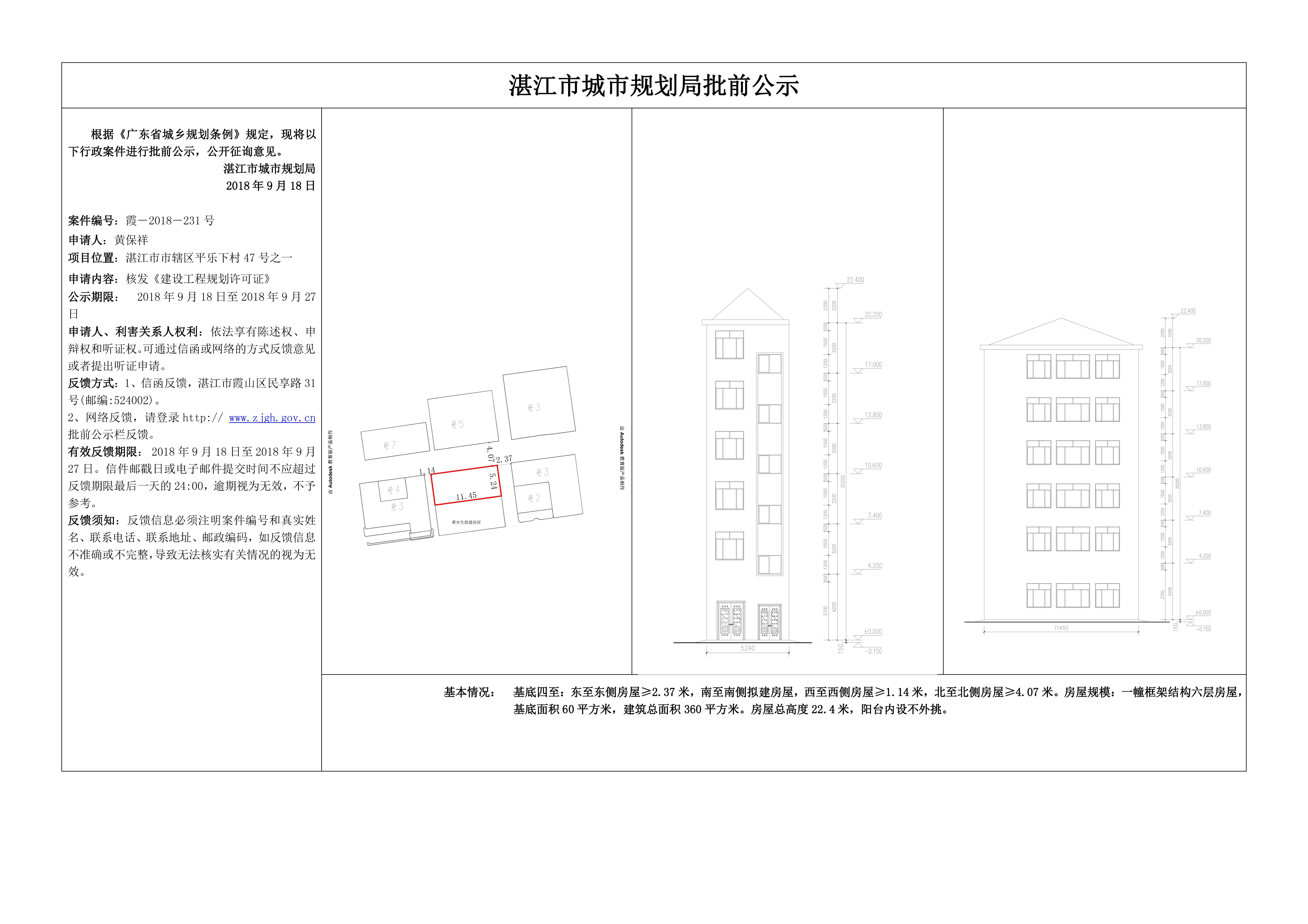 (黄保祥)核发《建设工程规划许可证》批前公示