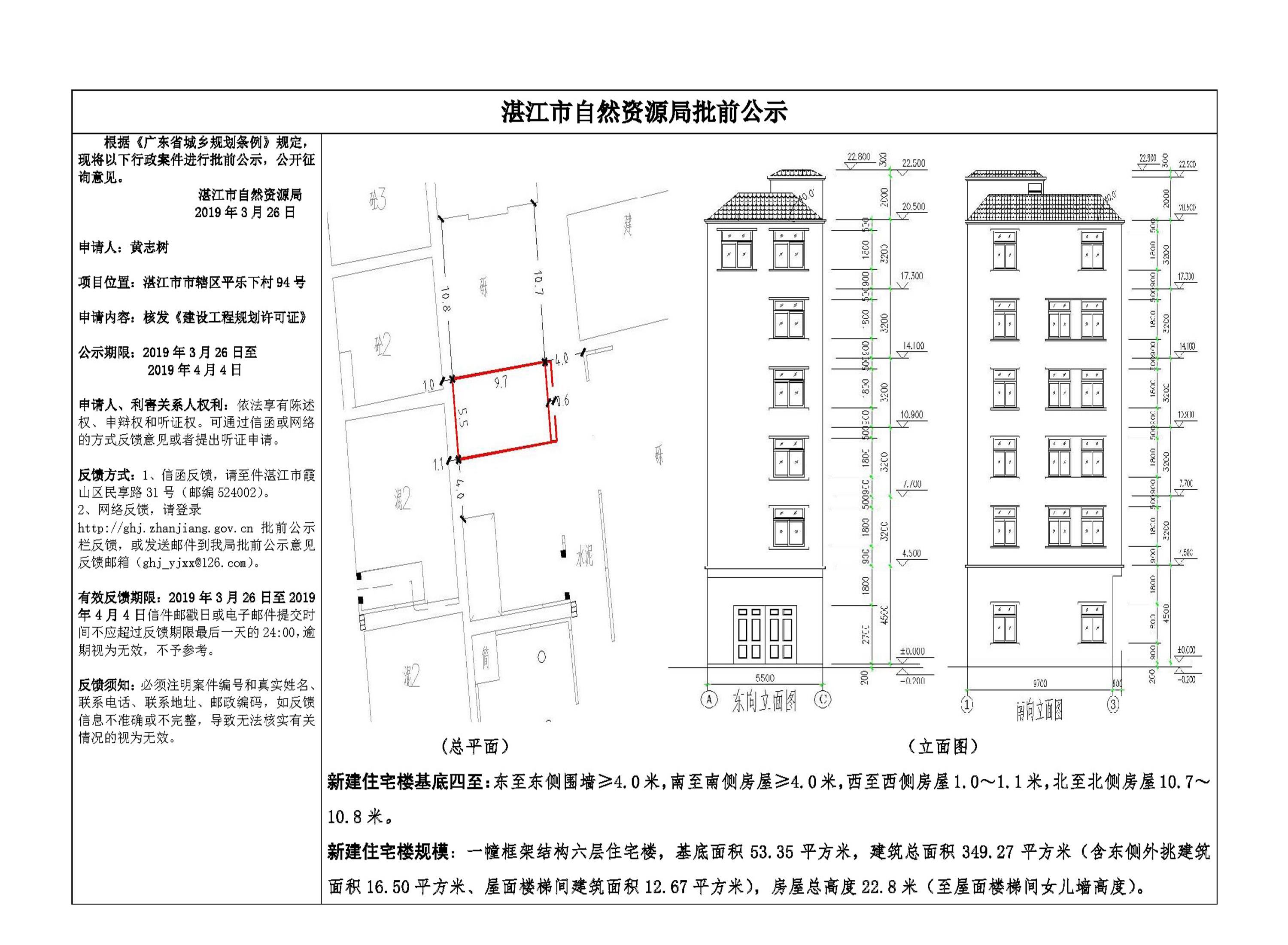 (黄志树)核发《建设工程规划许可证》批前公示