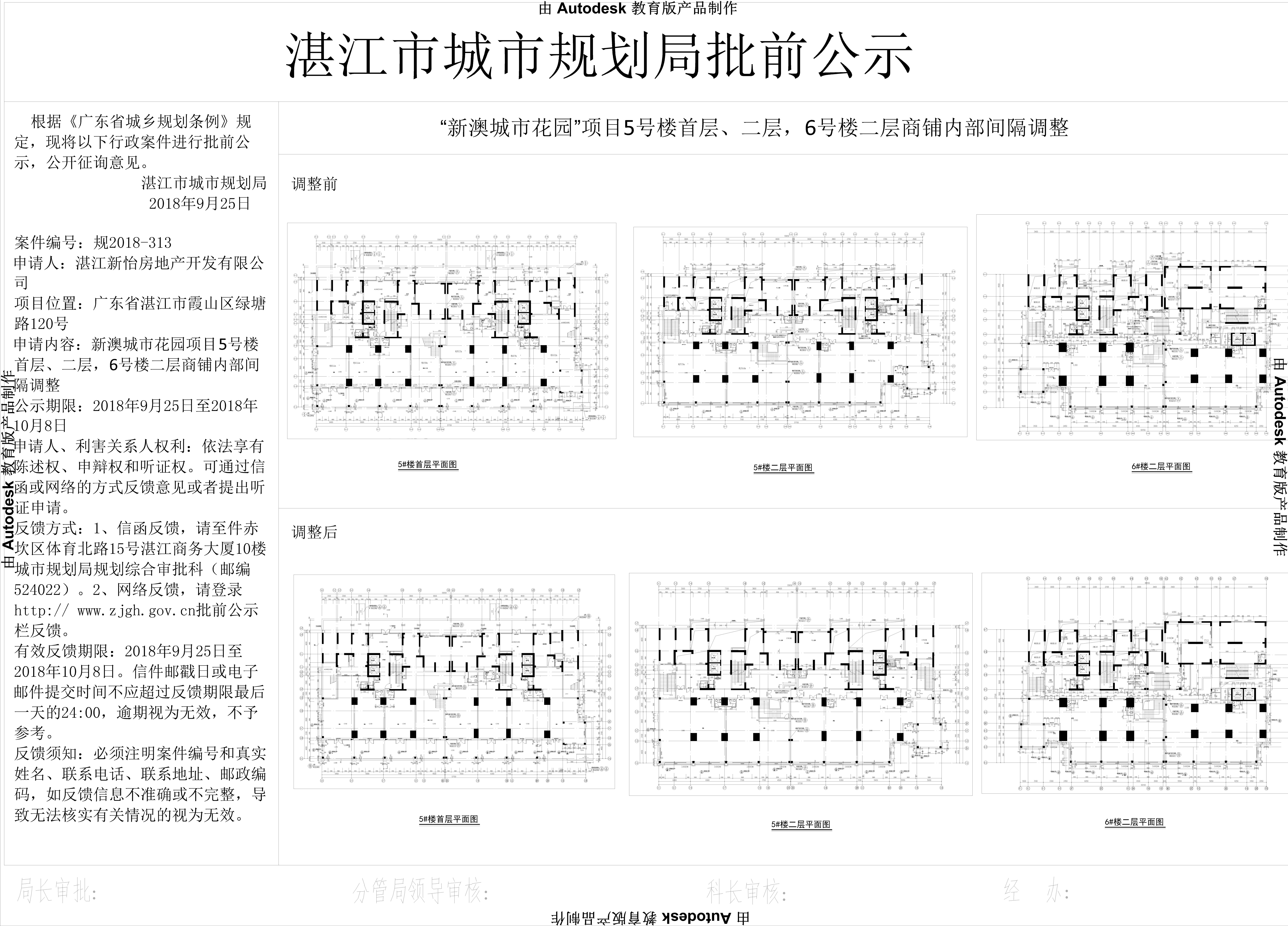新澳城市花园项目5号楼首层、二层,6号楼二层商铺内部间隔调整批前公示