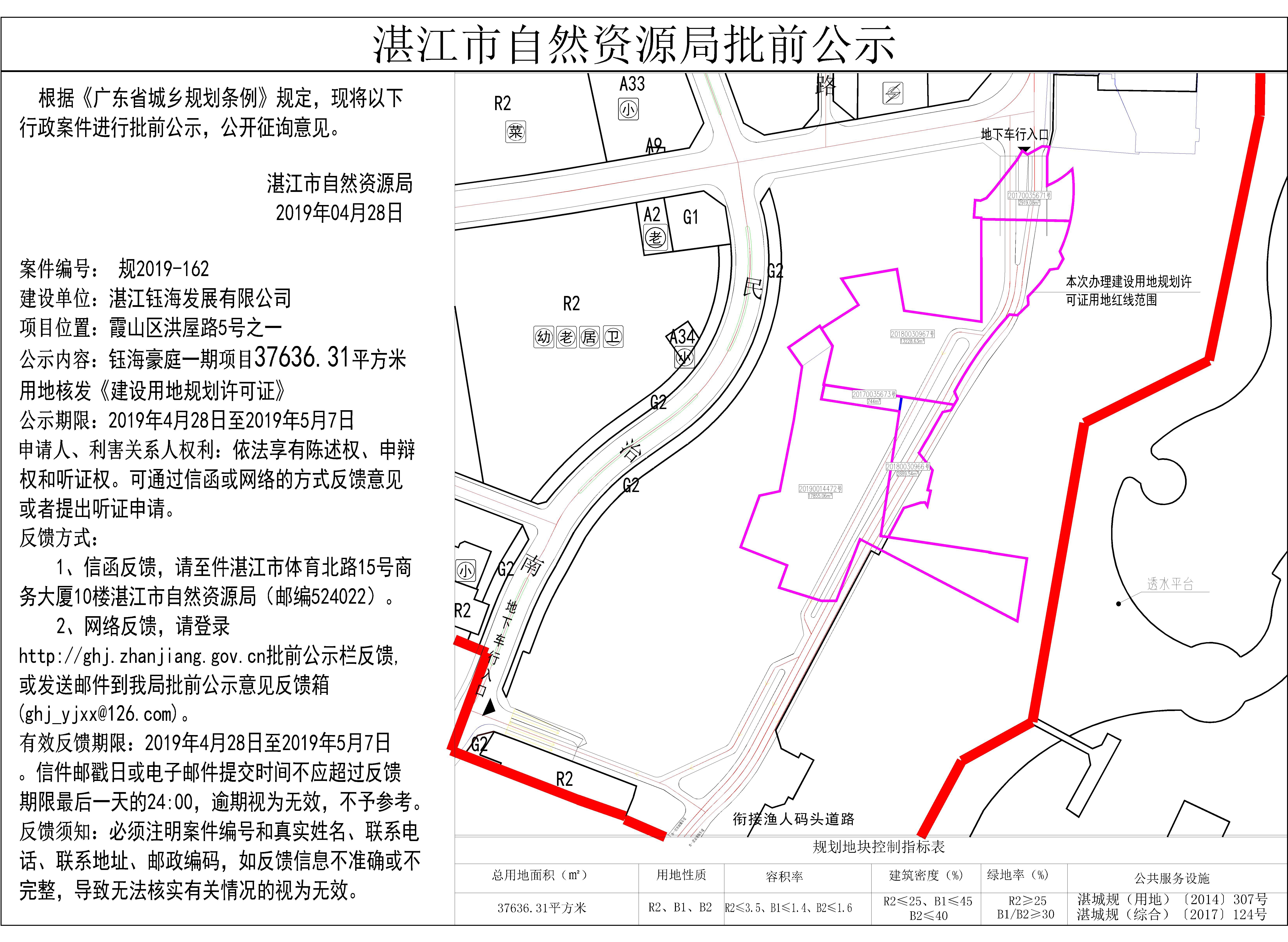 钰海豪庭一期项目37636.31平方米用地核发《建设用地规划许可证》批前公示
