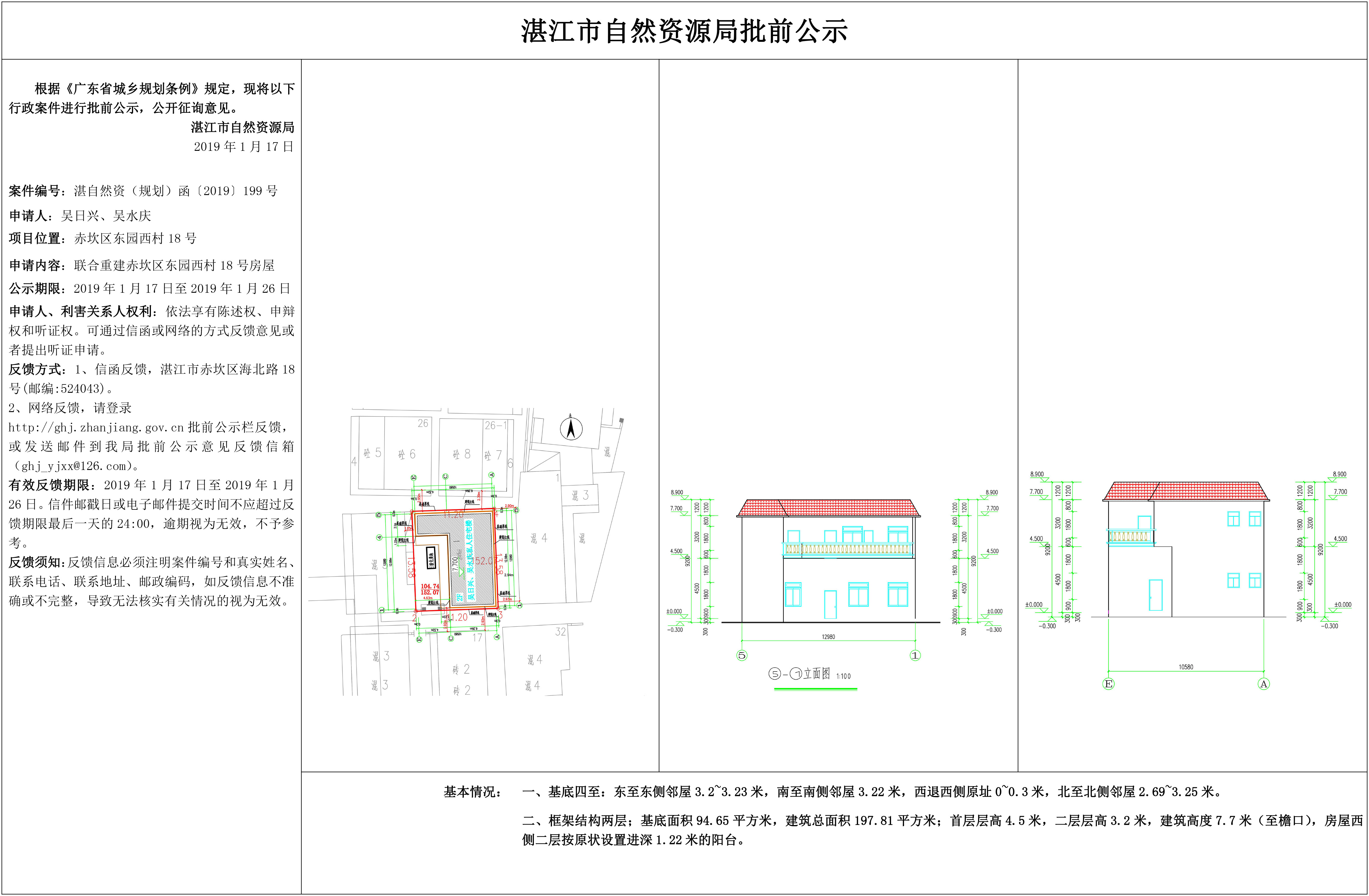(吴日兴、吴水庆)联合重建赤坎区东园西村18号房屋批前公示