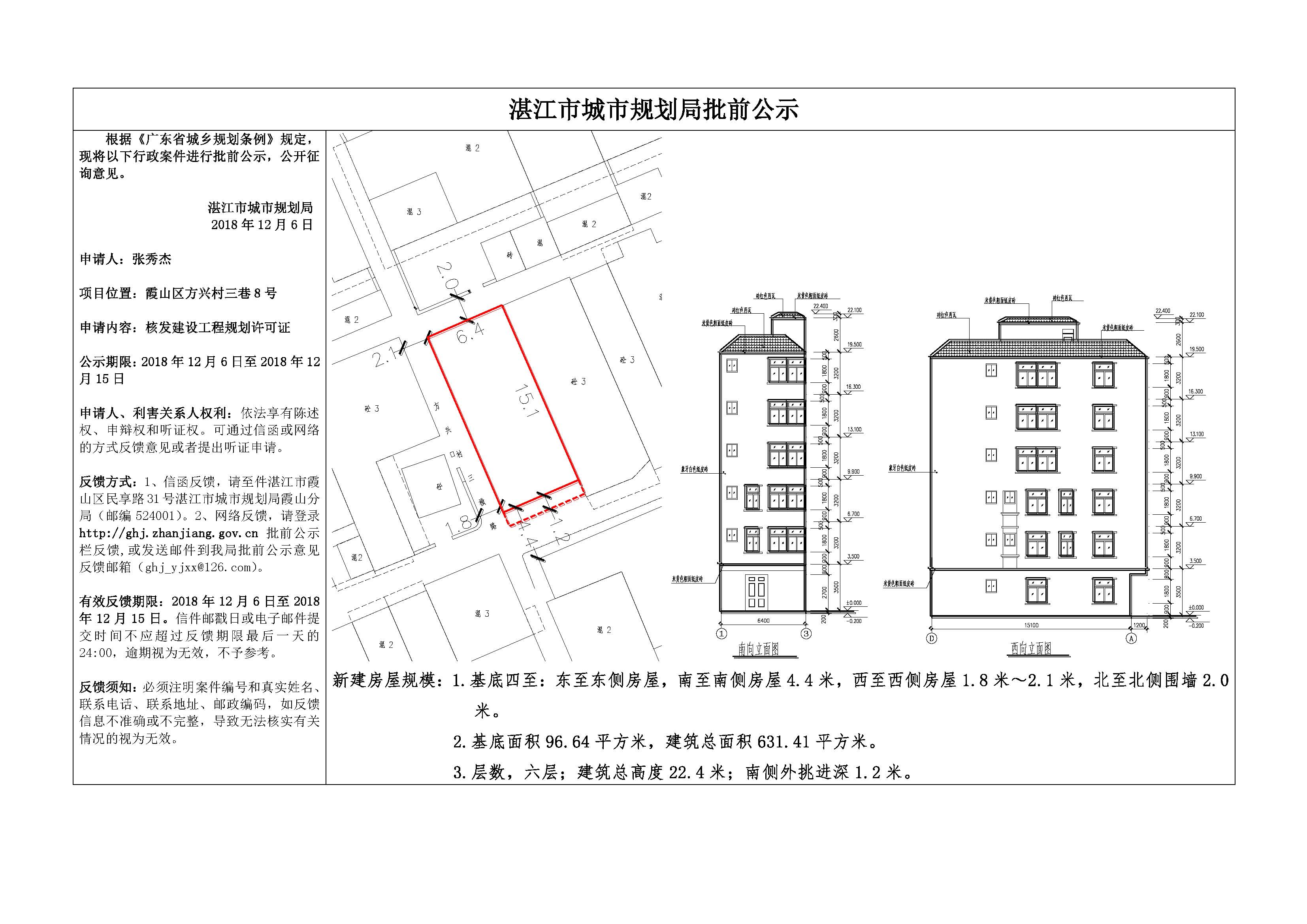 (张秀杰)核发建设工程规划许可证批前公示(方兴村三巷8号)