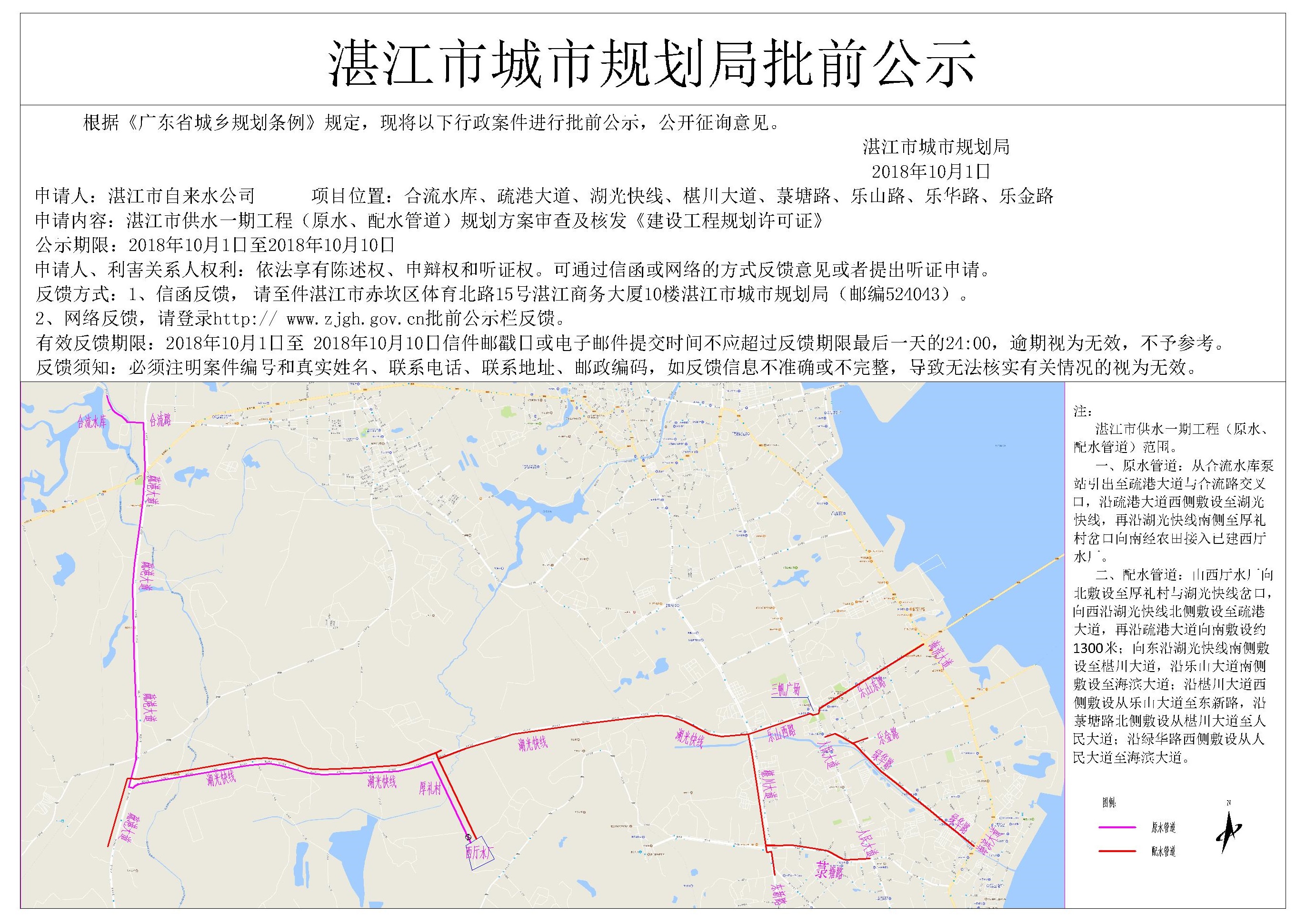 湛江市供水一期工程(原水、配水管道)规划方案审查及核发《建设工...
