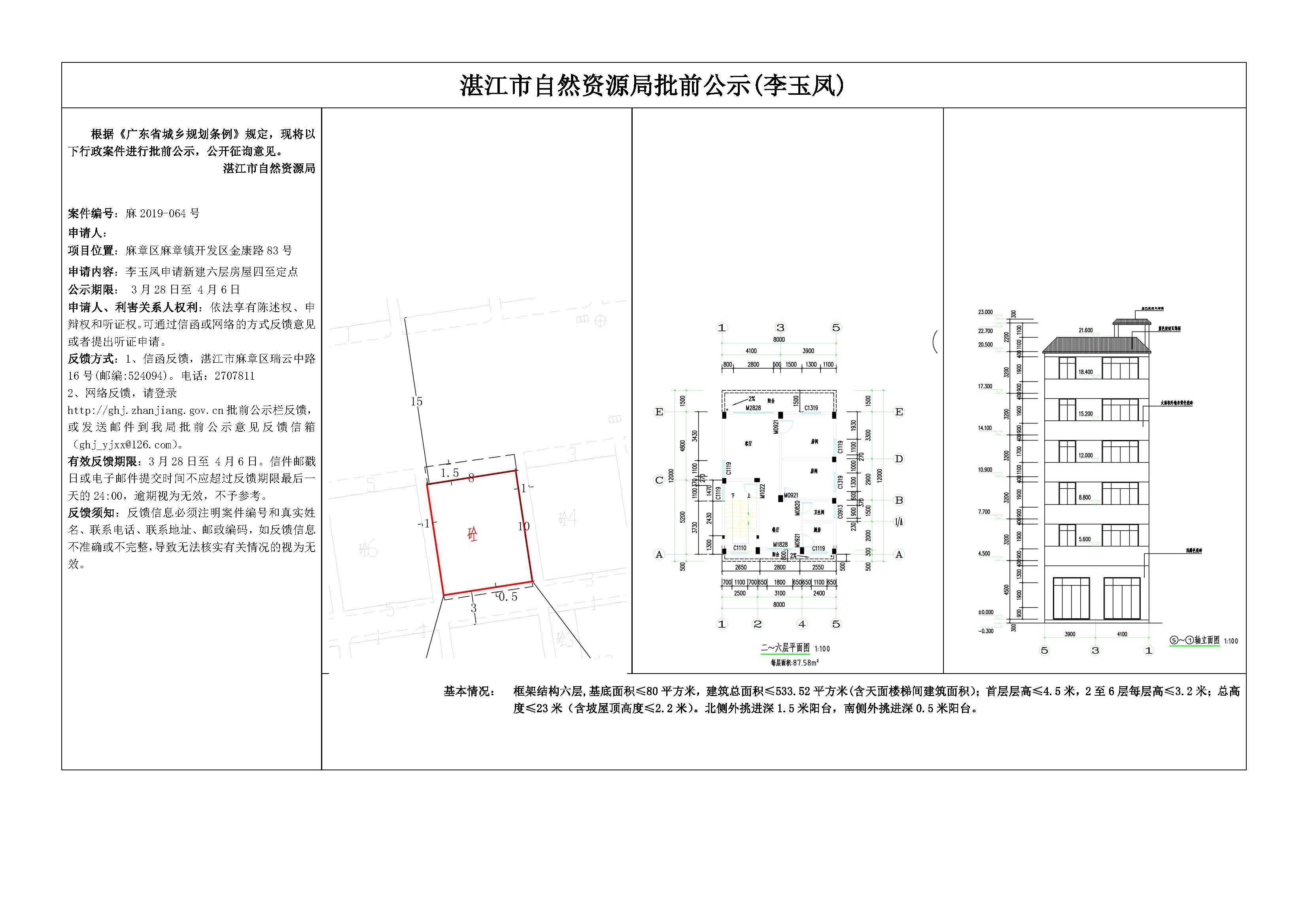李玉凤申请新建六层房屋四至定点批前公示
