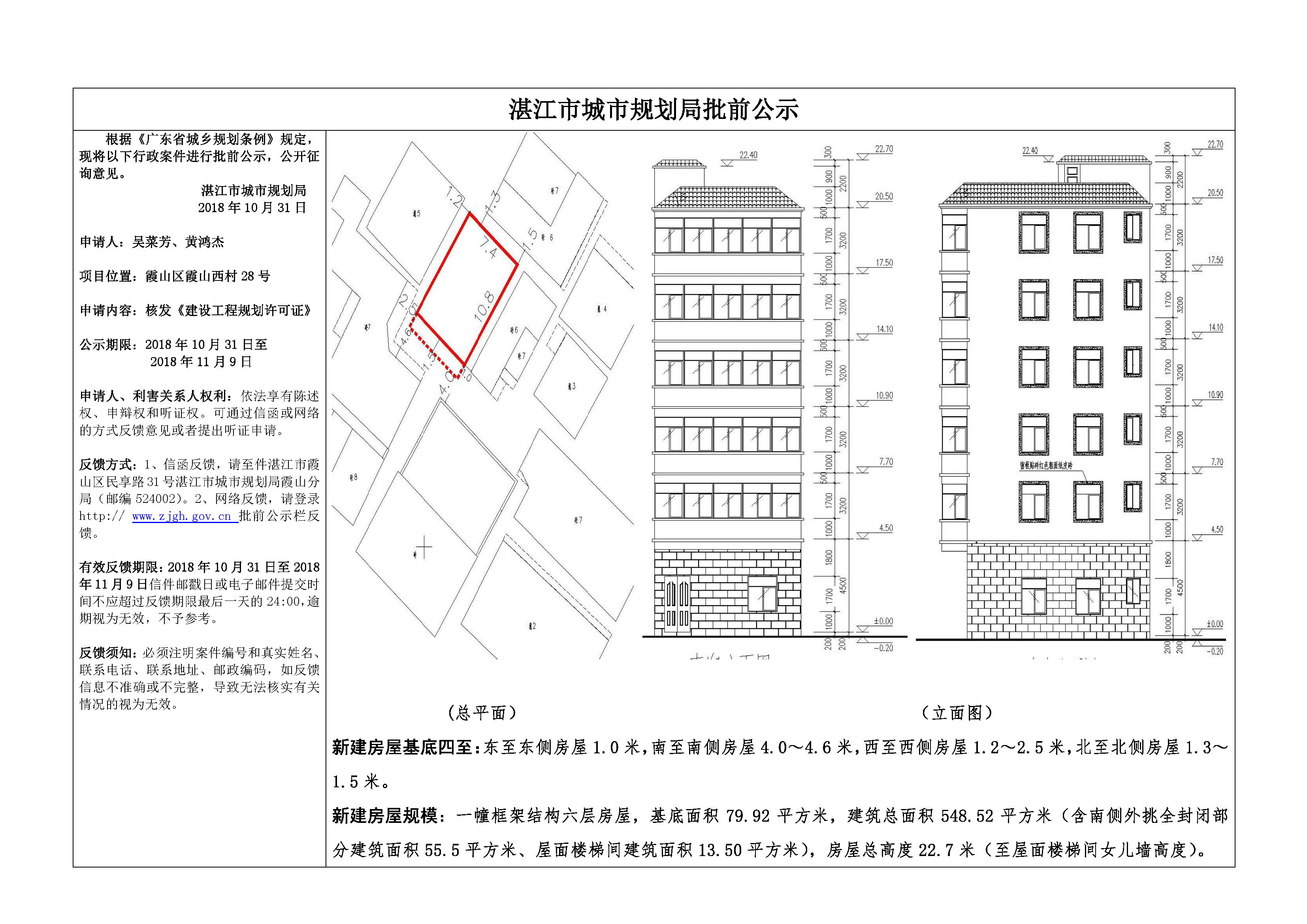 (吴菜芳、黄鸿杰)核发《建设工程规划许可证》批前公示