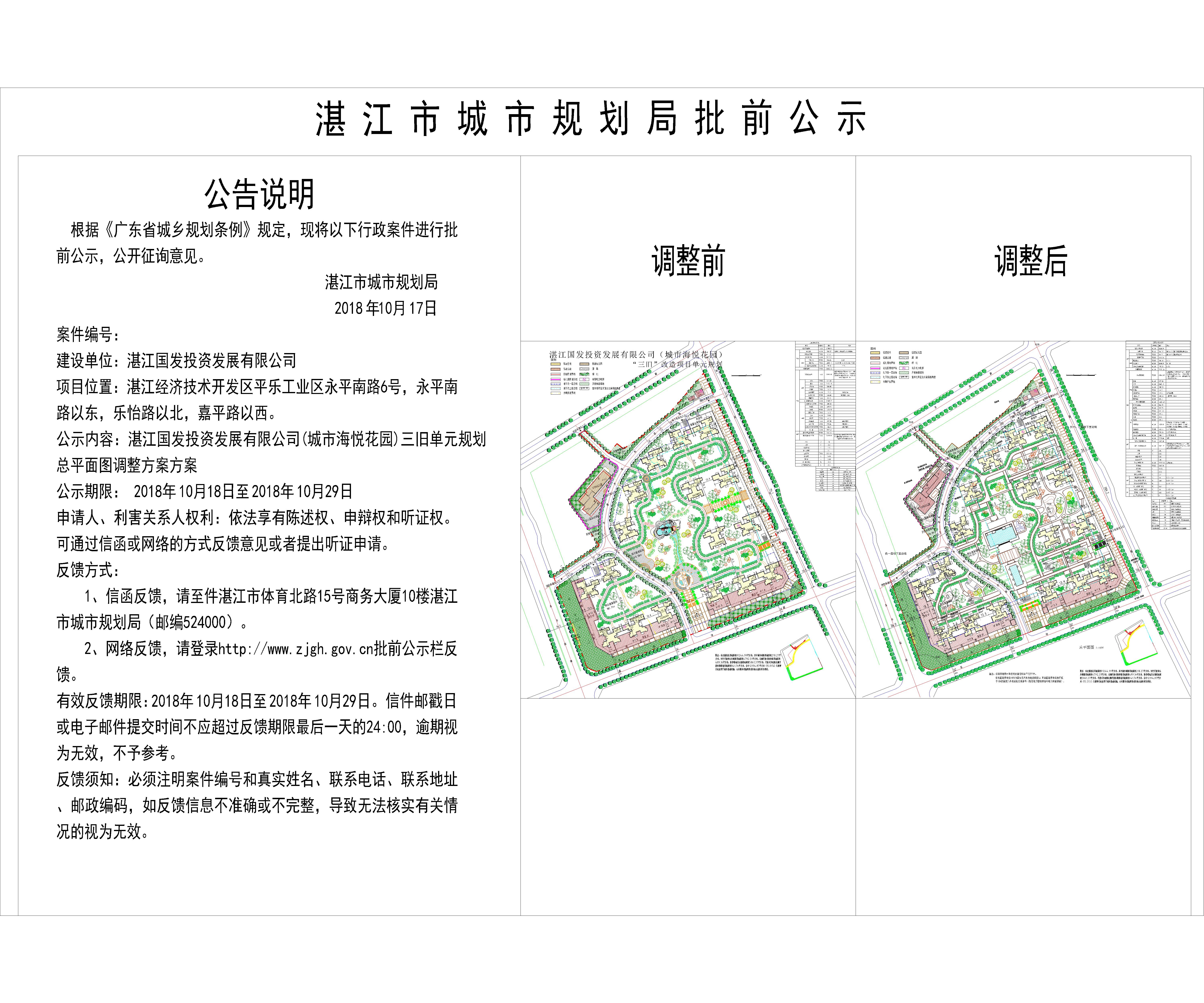 湛江国发投资发展有限公司(城市海悦花园)三旧单元规划总平面图调...