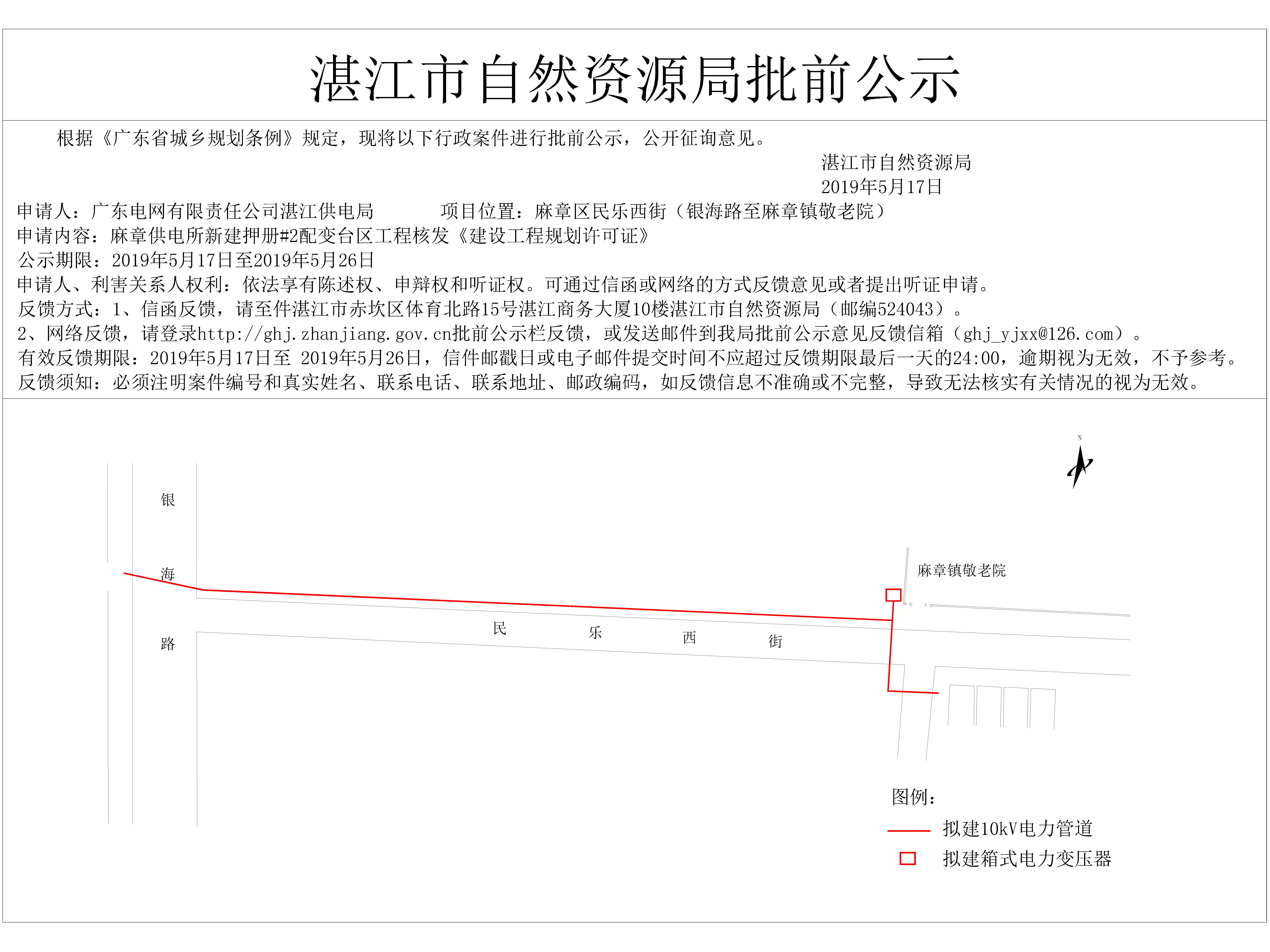 麻章供电所新建雅册#2配变台区工程核发《建设工程规划许可证》批前公示