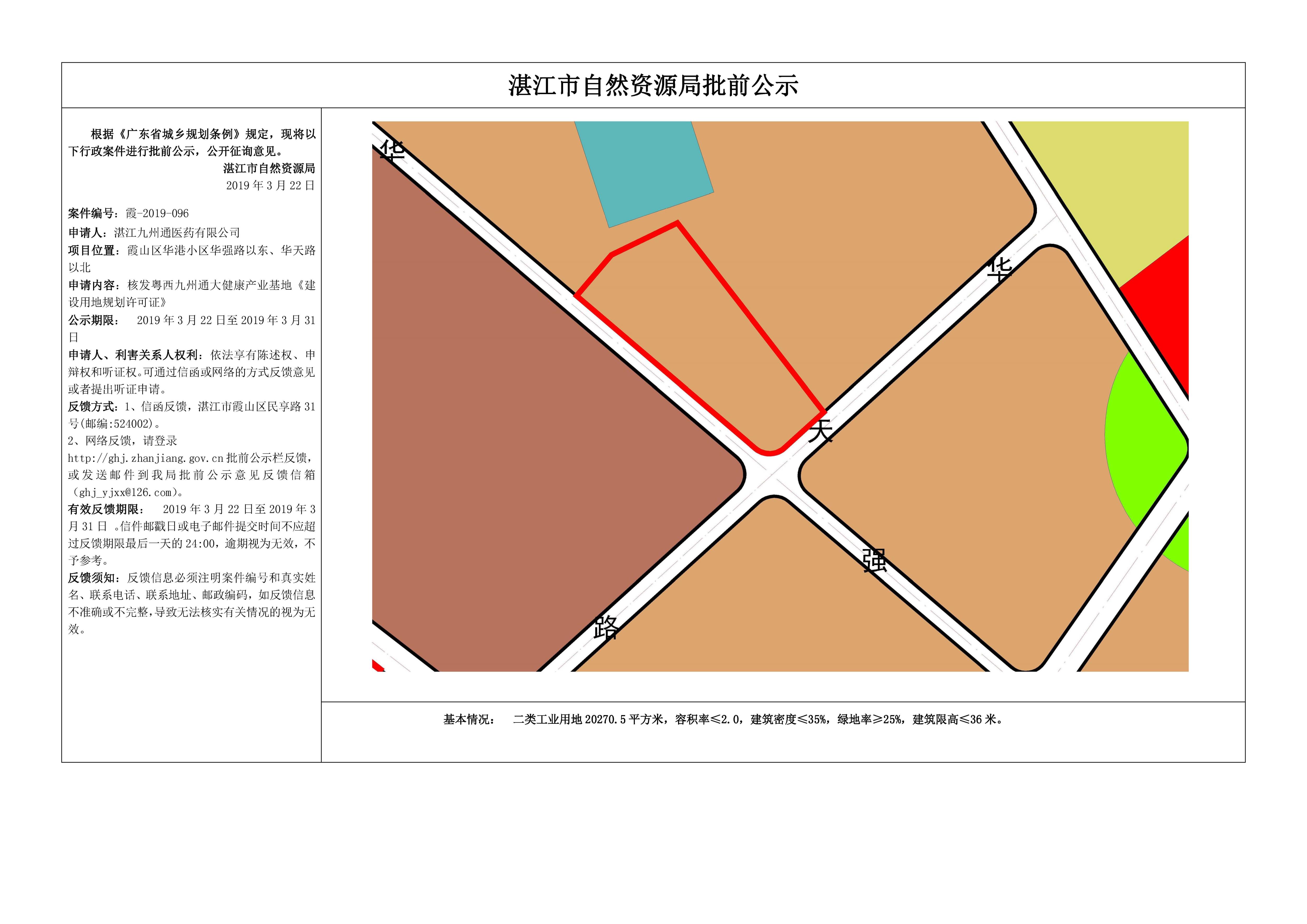 (粤西九州通大健康产业基地) 核发《建设用地规划许可证》批前公示