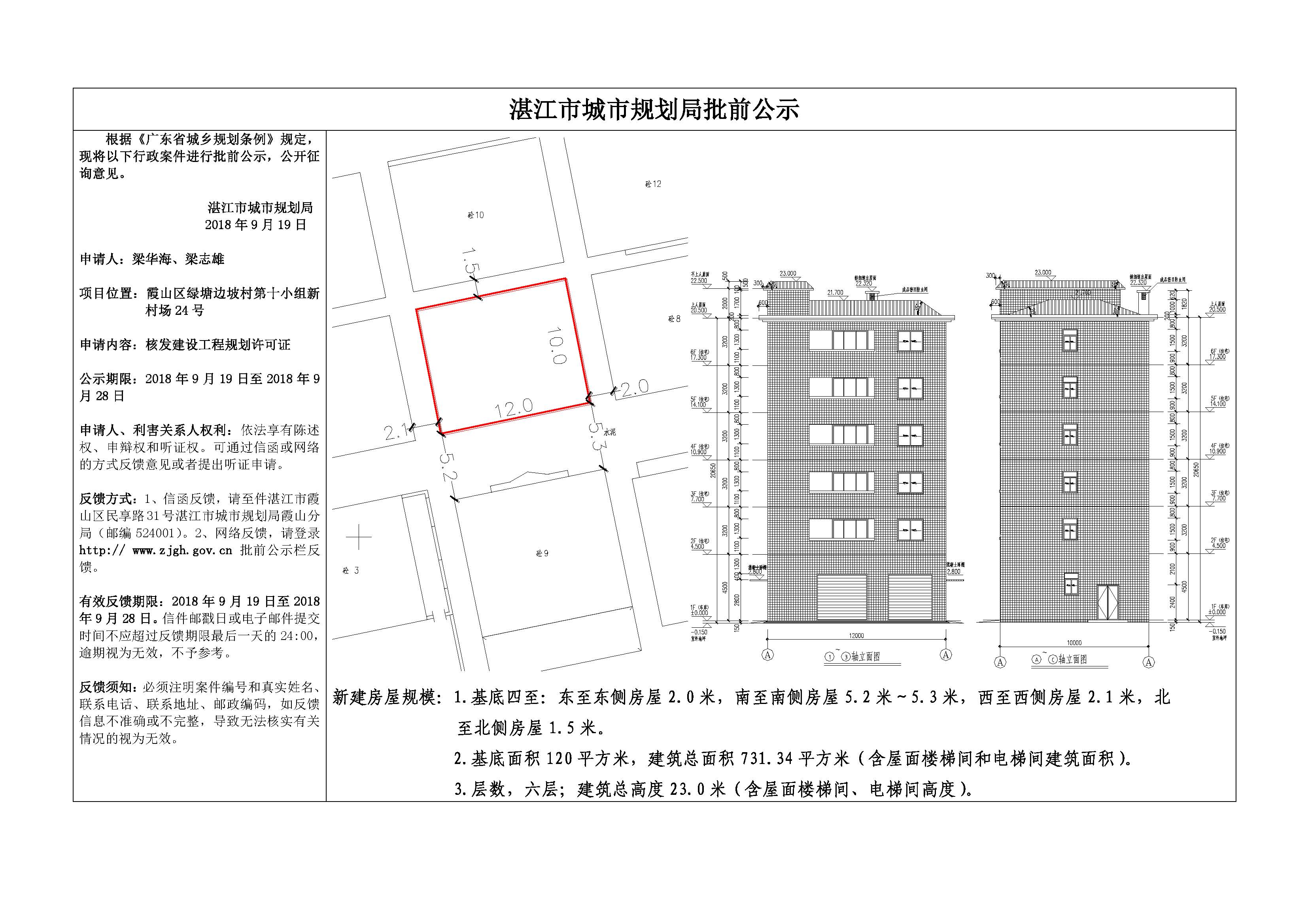 核发建设工程规划许可证批前公示(绿塘边坡村第十小组新村场24号,...