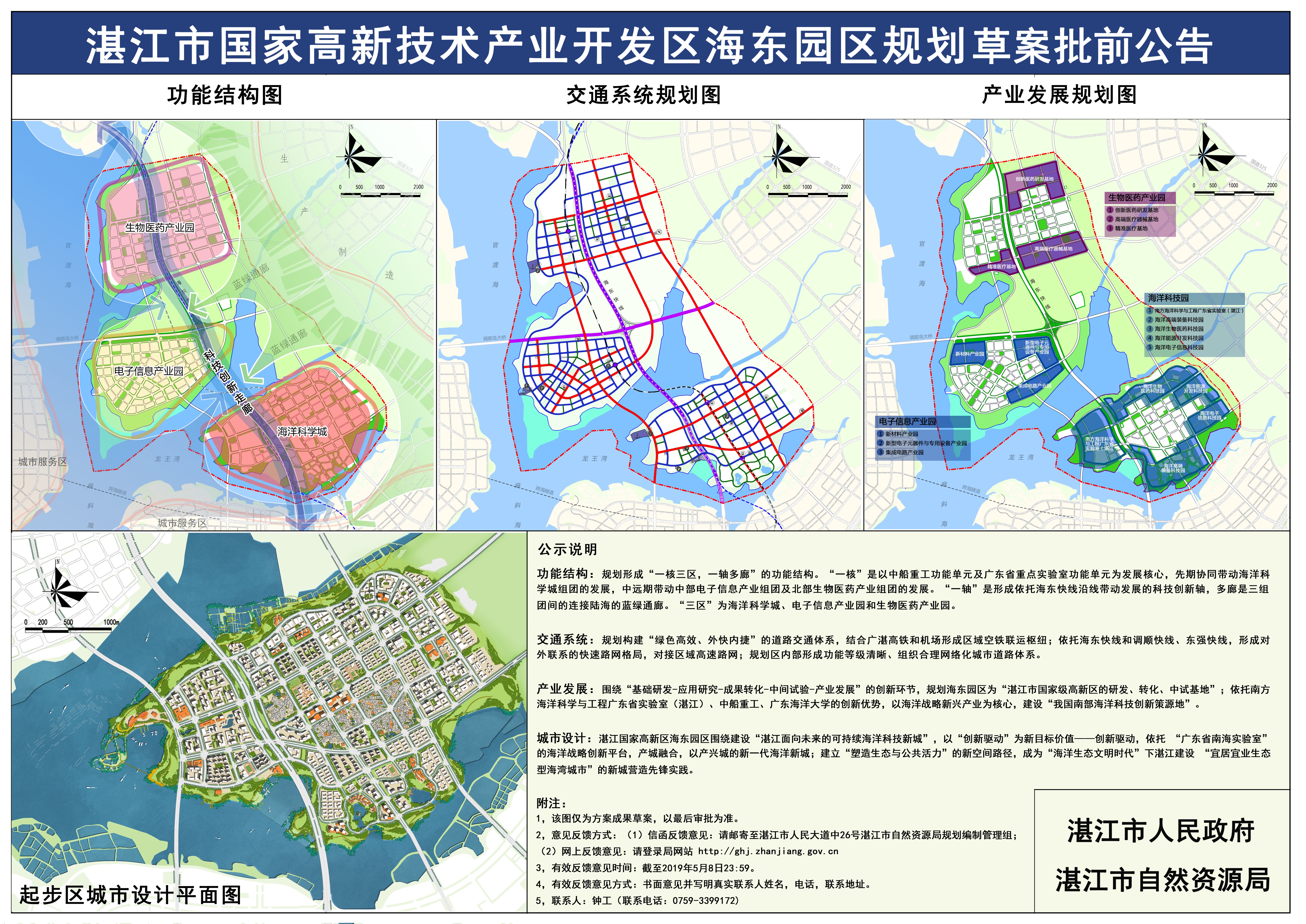 湛江市国家高新技术产业开发区海东园区规划草案批前公告批前公示