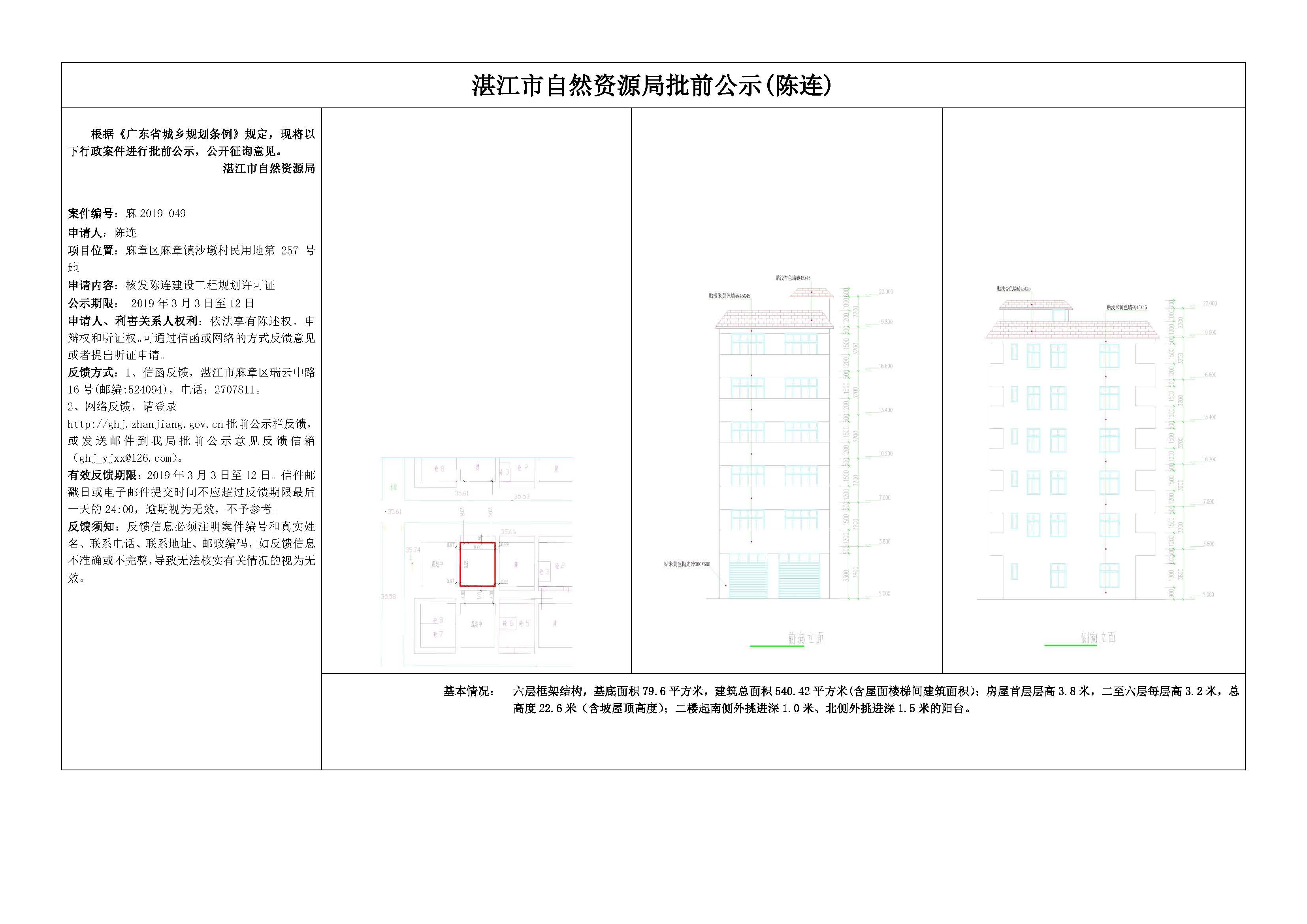 核发陈连建设工程规划许可证批前公示