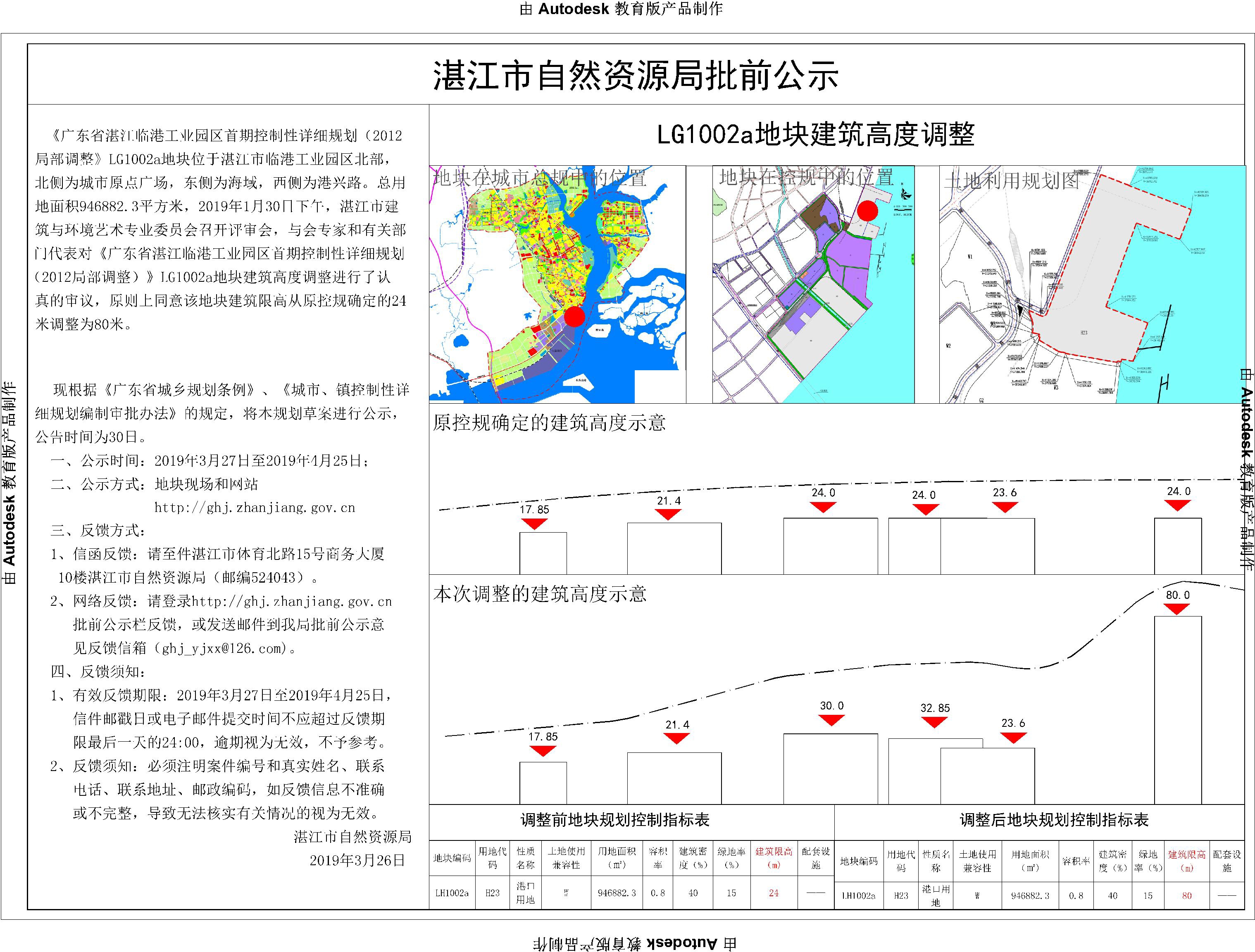 《广东省湛江临港工业园区首期控制性详细规划(2012局部调整)》LG1002a地块建筑高度调整批前公示