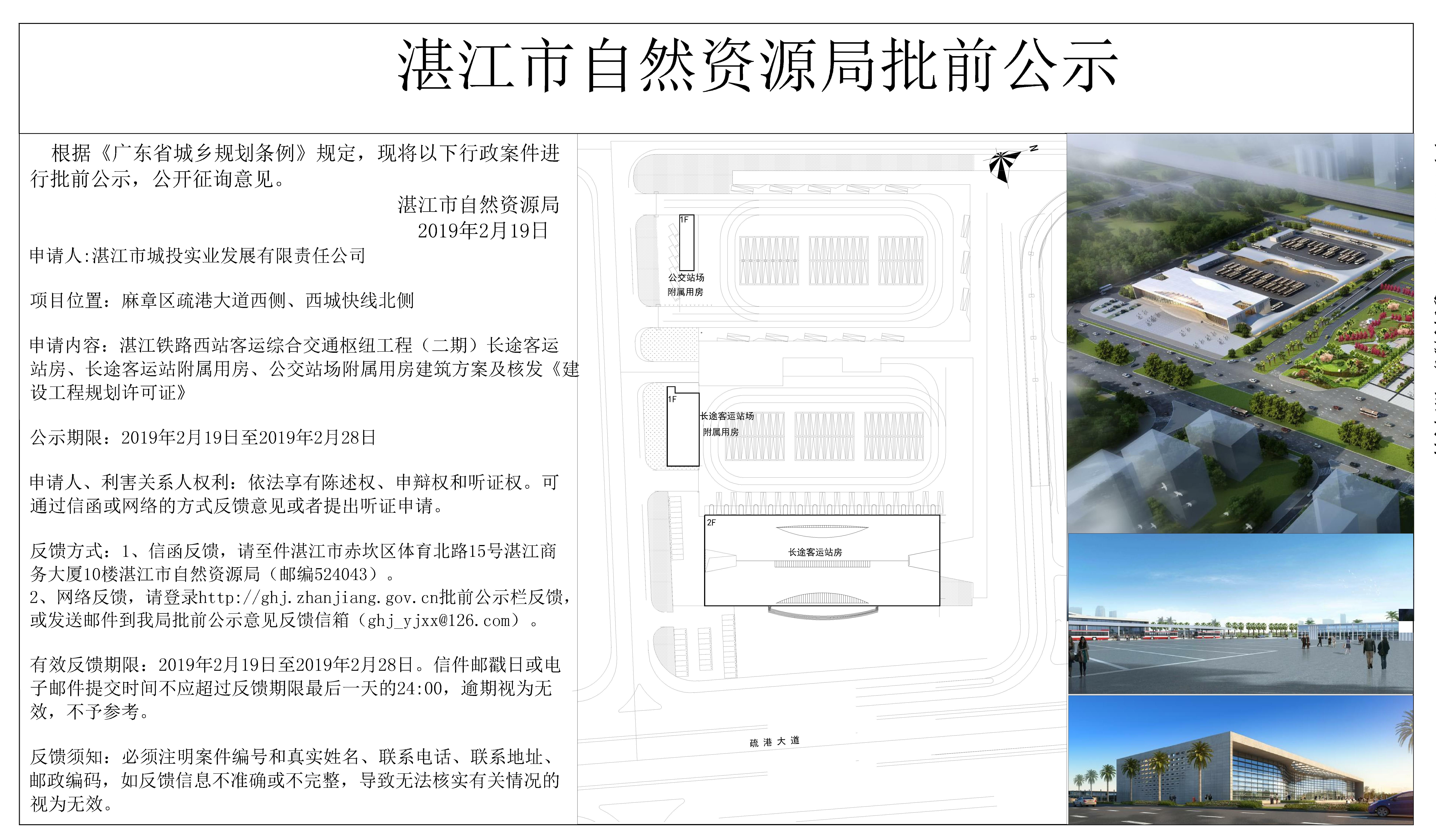 湛江铁路西站客运综合交通枢纽工程(二期)长途客运站房、长途客运站附属用房、公交站场附属用房建筑方案及核发《建设工程规划许可证》批前公示