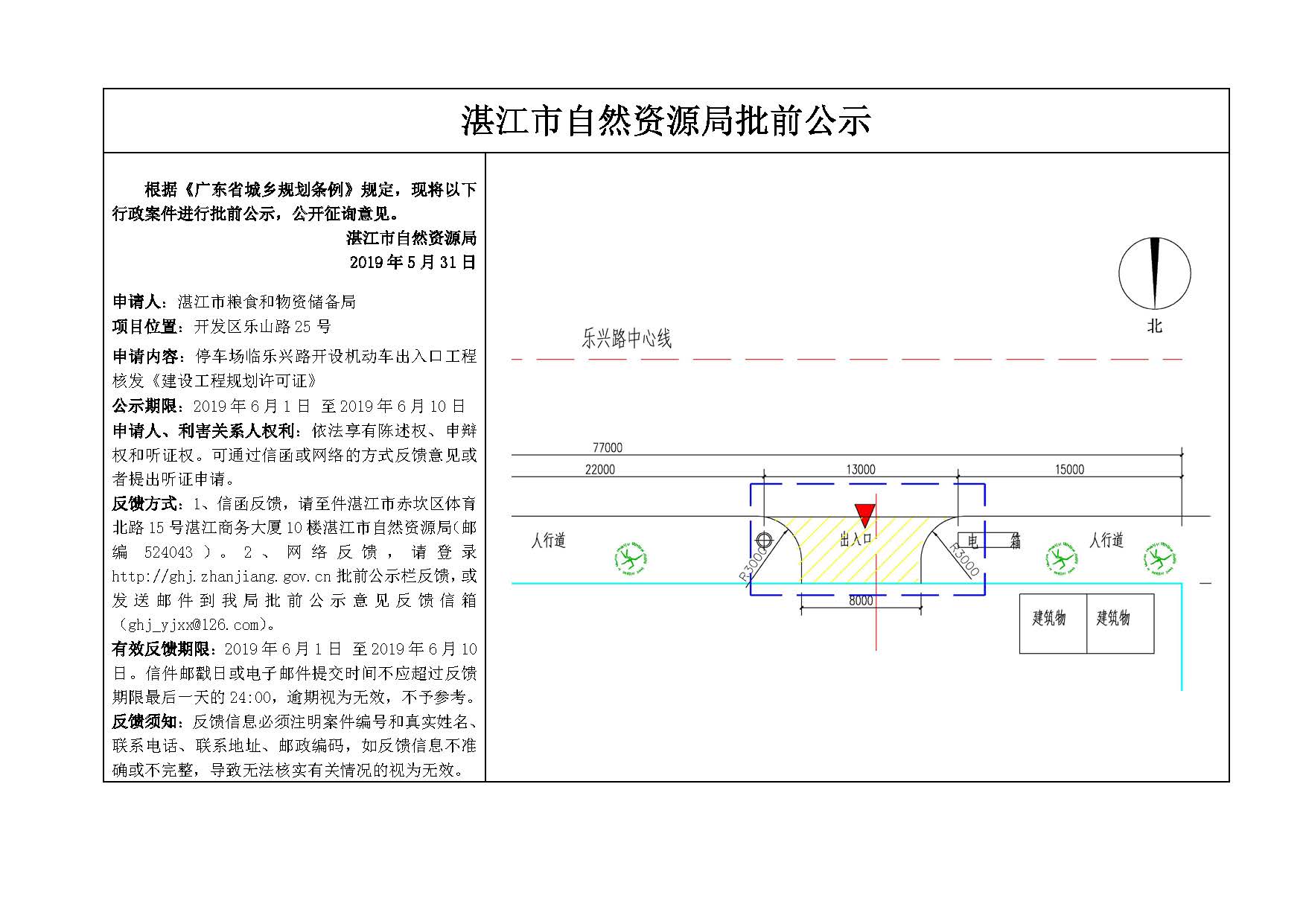 停车场临乐兴路开设机动车出入口工程核发《建设工程规划许可证》批前公示