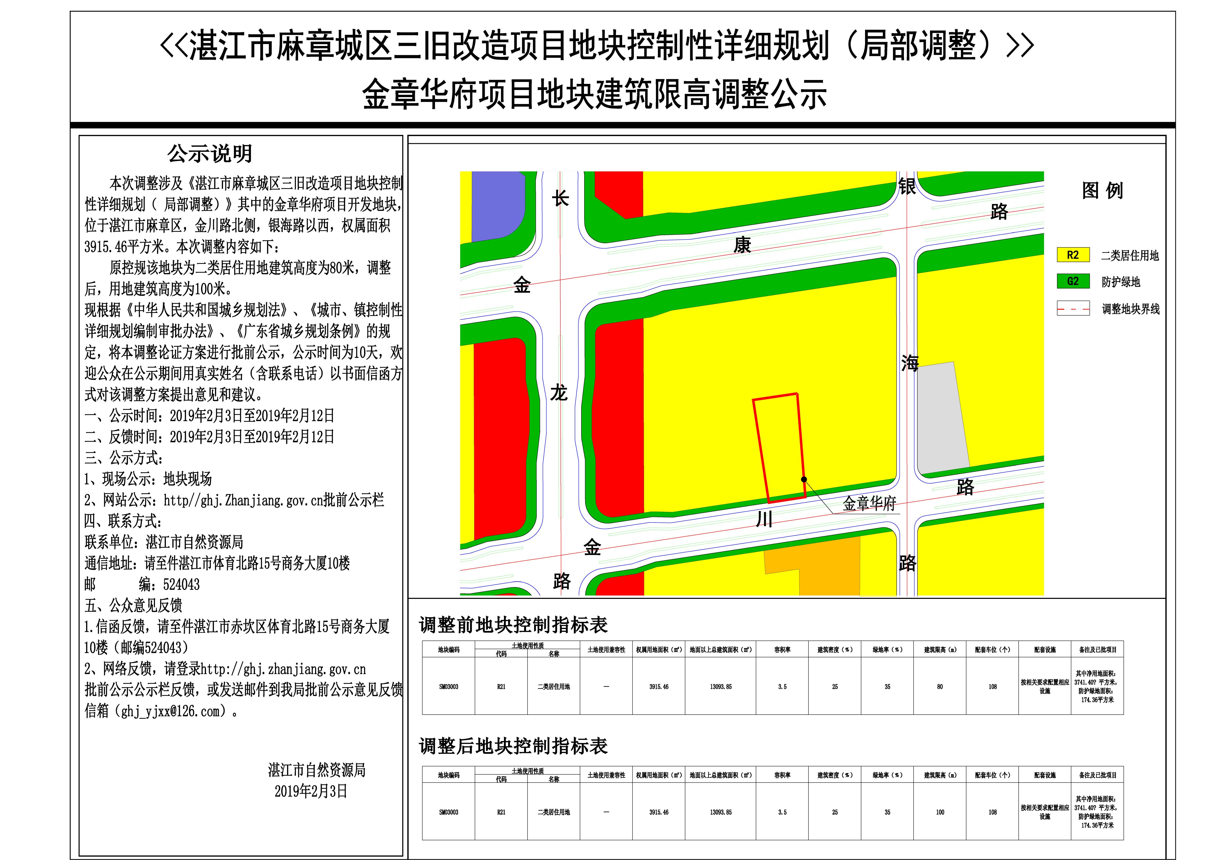 《湛江市麻章城区三旧改造项目地块控制性详细规划(局部调整)》金章华府项目地块建筑限高调整公示