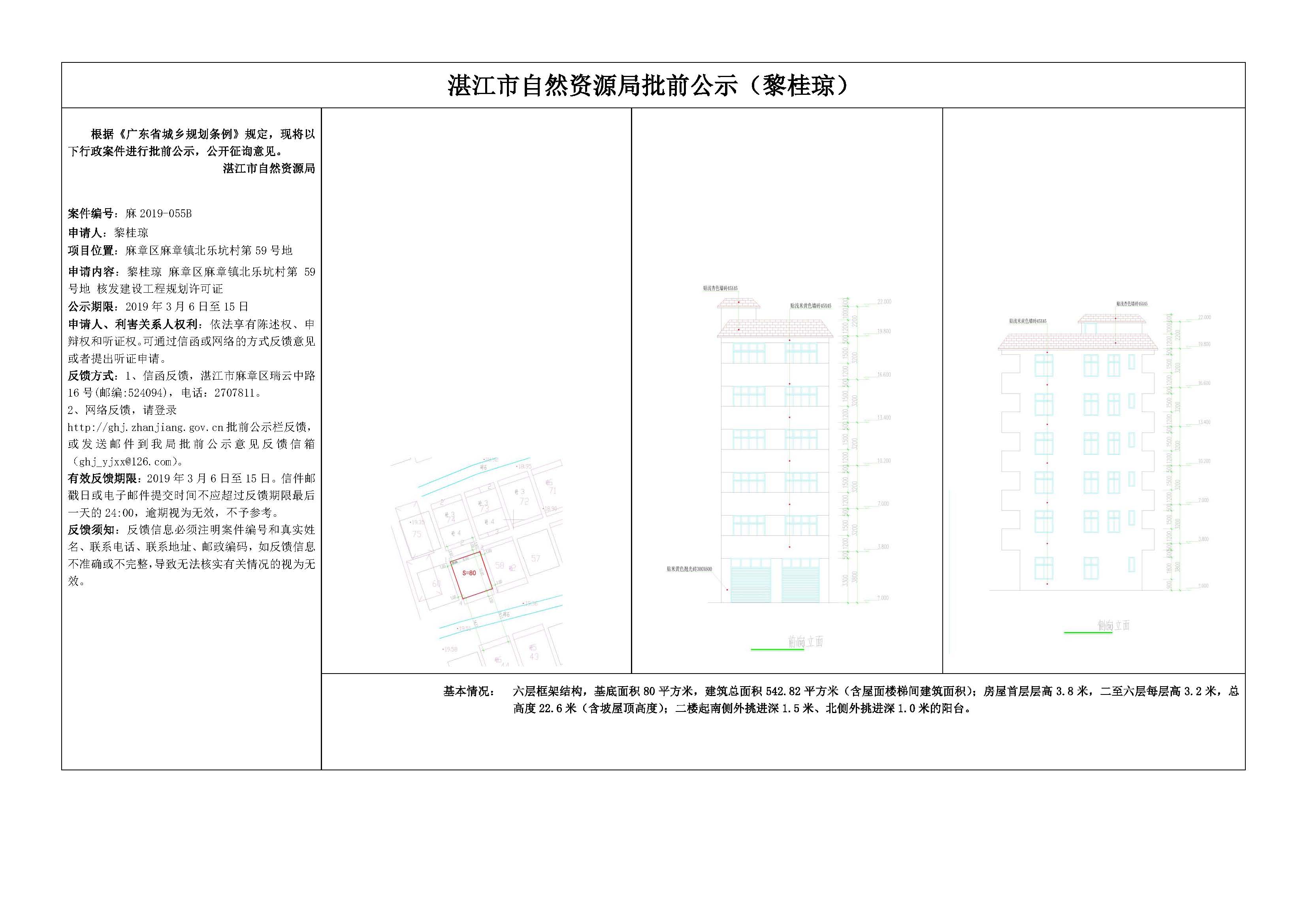 黎桂琼麻章区麻章镇北乐坑村第59号地核发建设工程规划许可证批前公示