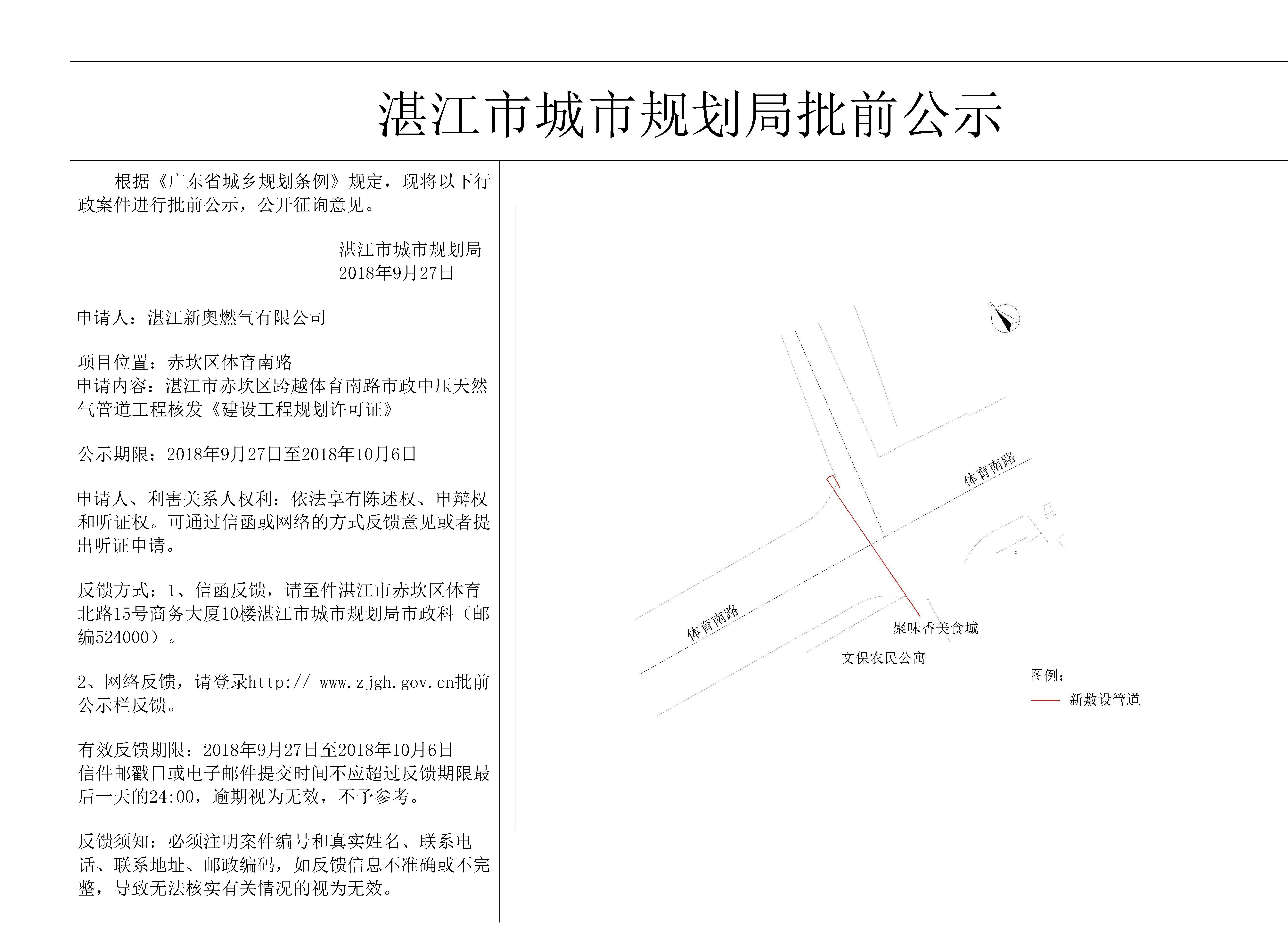 湛江市赤坎区跨越体育南路市政中压天然气管道工程核发《建设工程规...