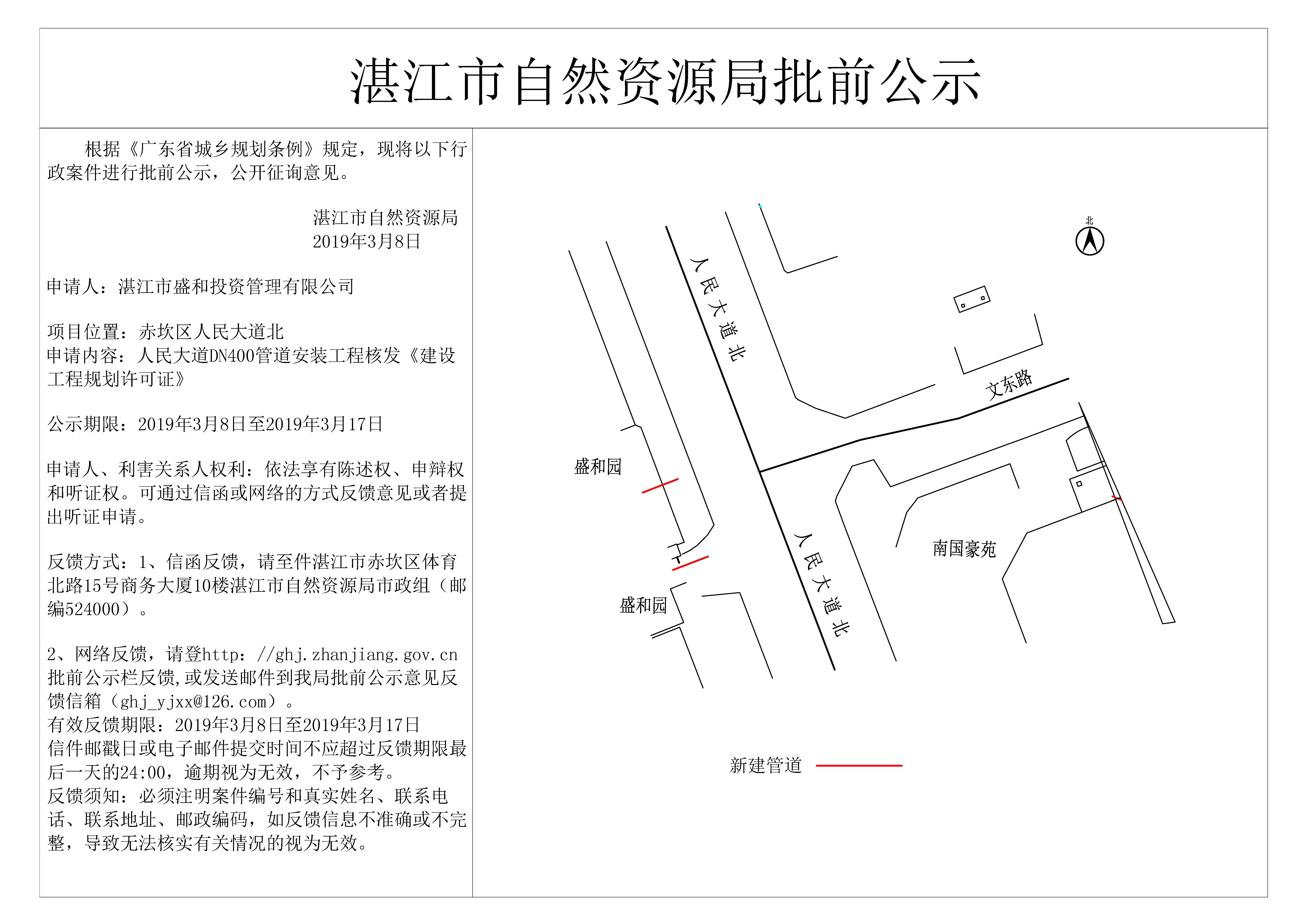 人民大道DN400管道安装工程核发《建设工程规划许可证》批前公示