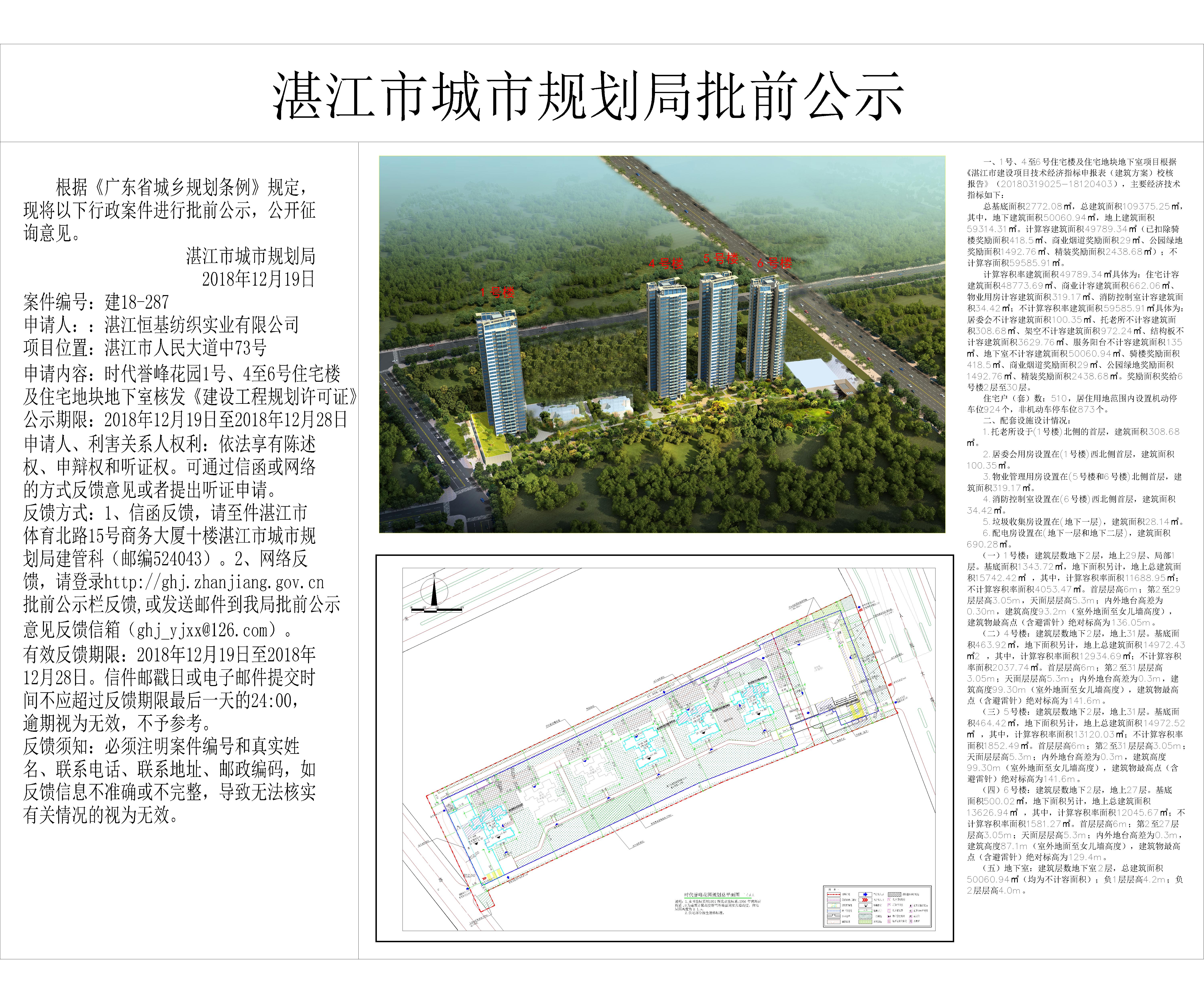 时代誉峰花园1号、4至6号住宅楼及住宅地块地下室核发《建设工程规划许可证》批前公示