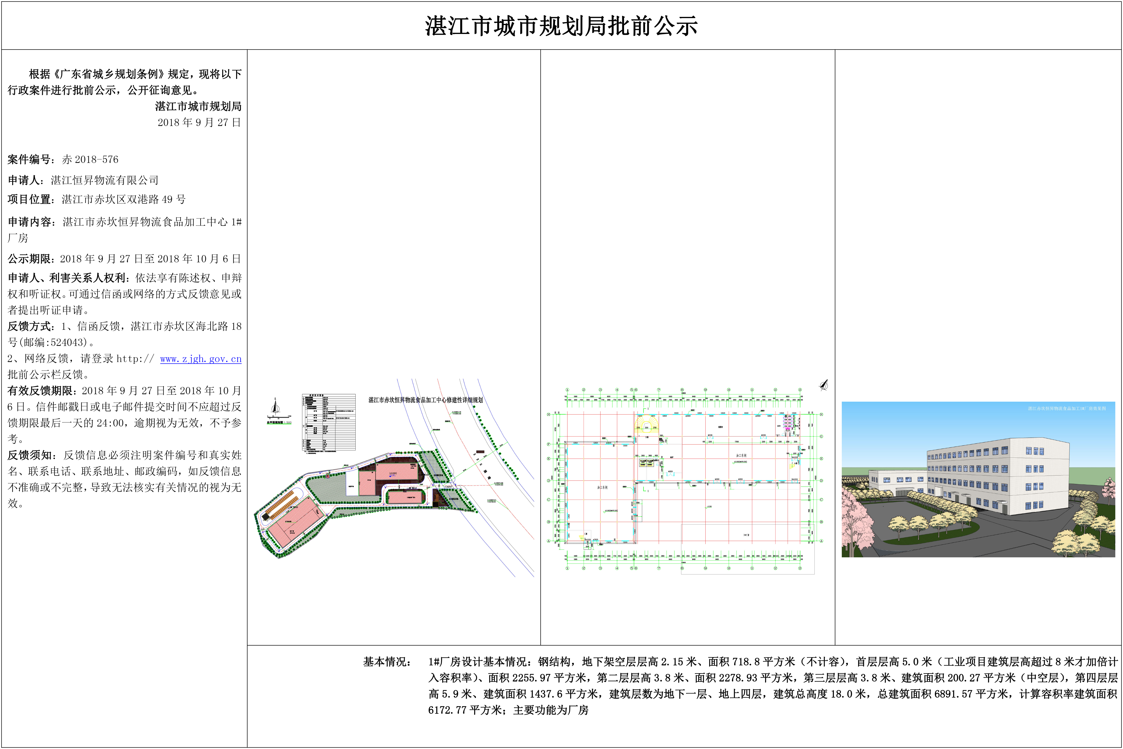 湛江市赤坎恒昇物流食品加工中心1#厂房批前公示