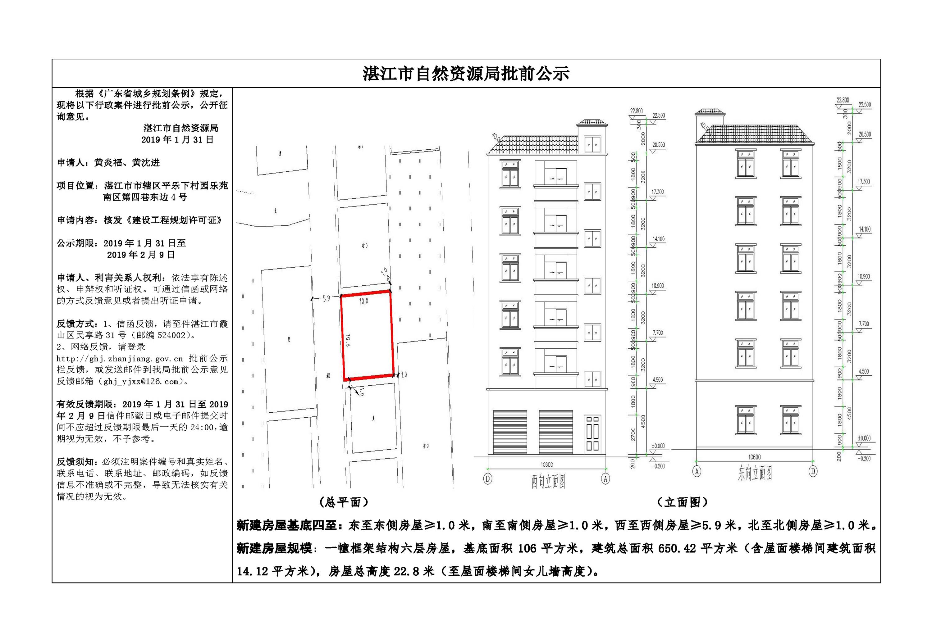 (黄炎福、黄沈进)核发《建设工程规划许可证》批前公示
