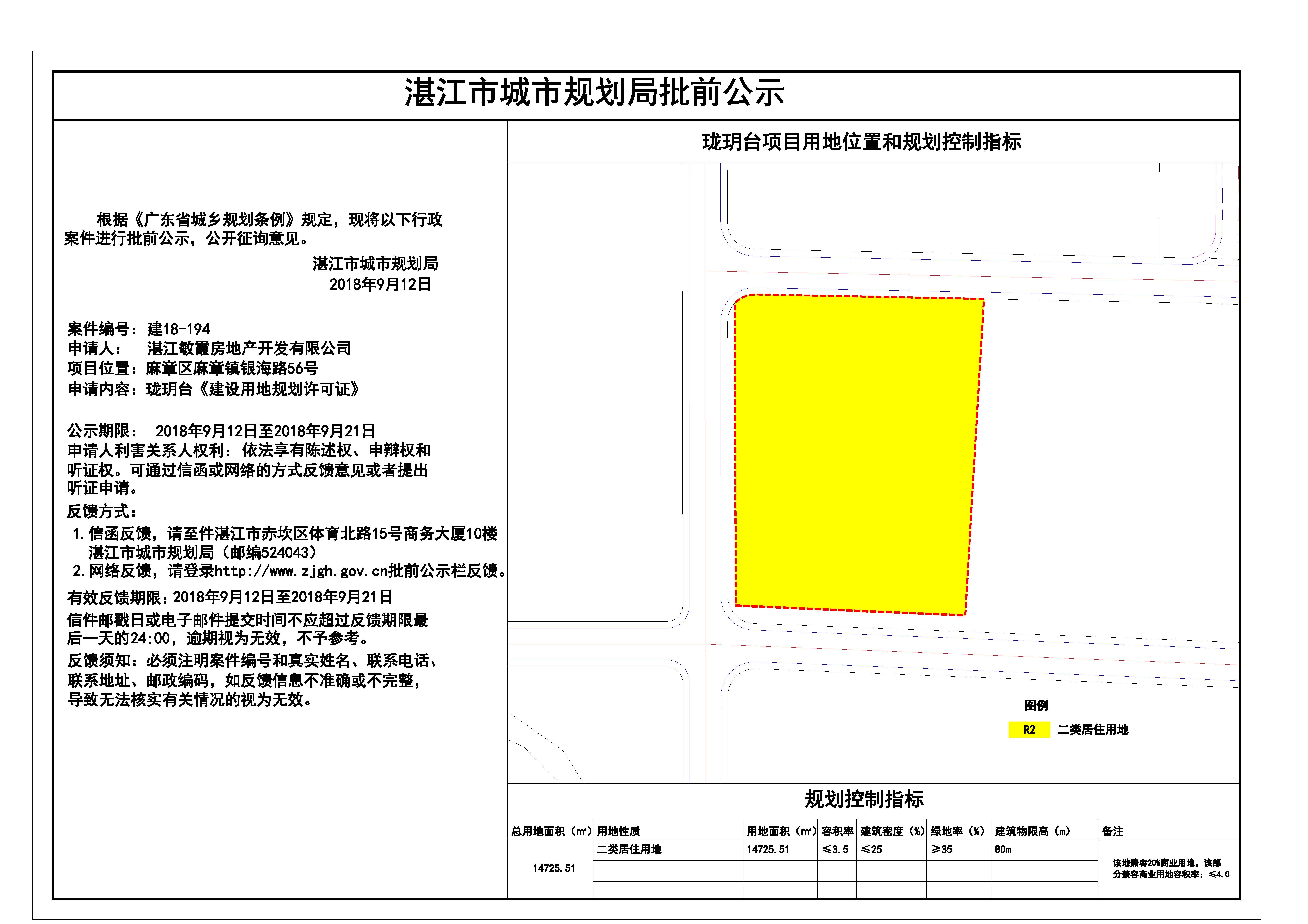珑玥台《建设用地规划许可证》批前公示