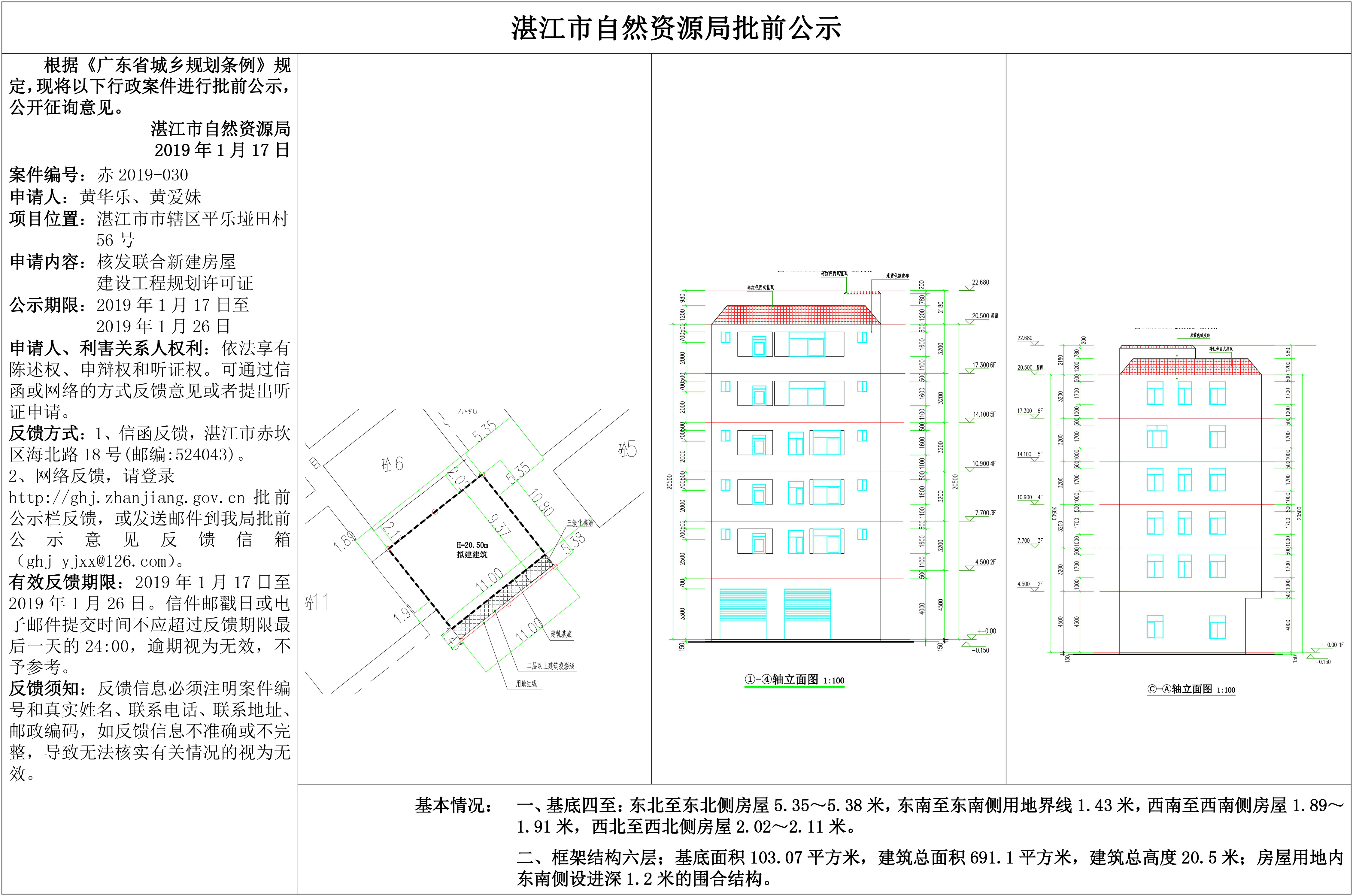 (黄华乐、黄爱妹)核发联合新建房屋建设工程规划许可证批前公示