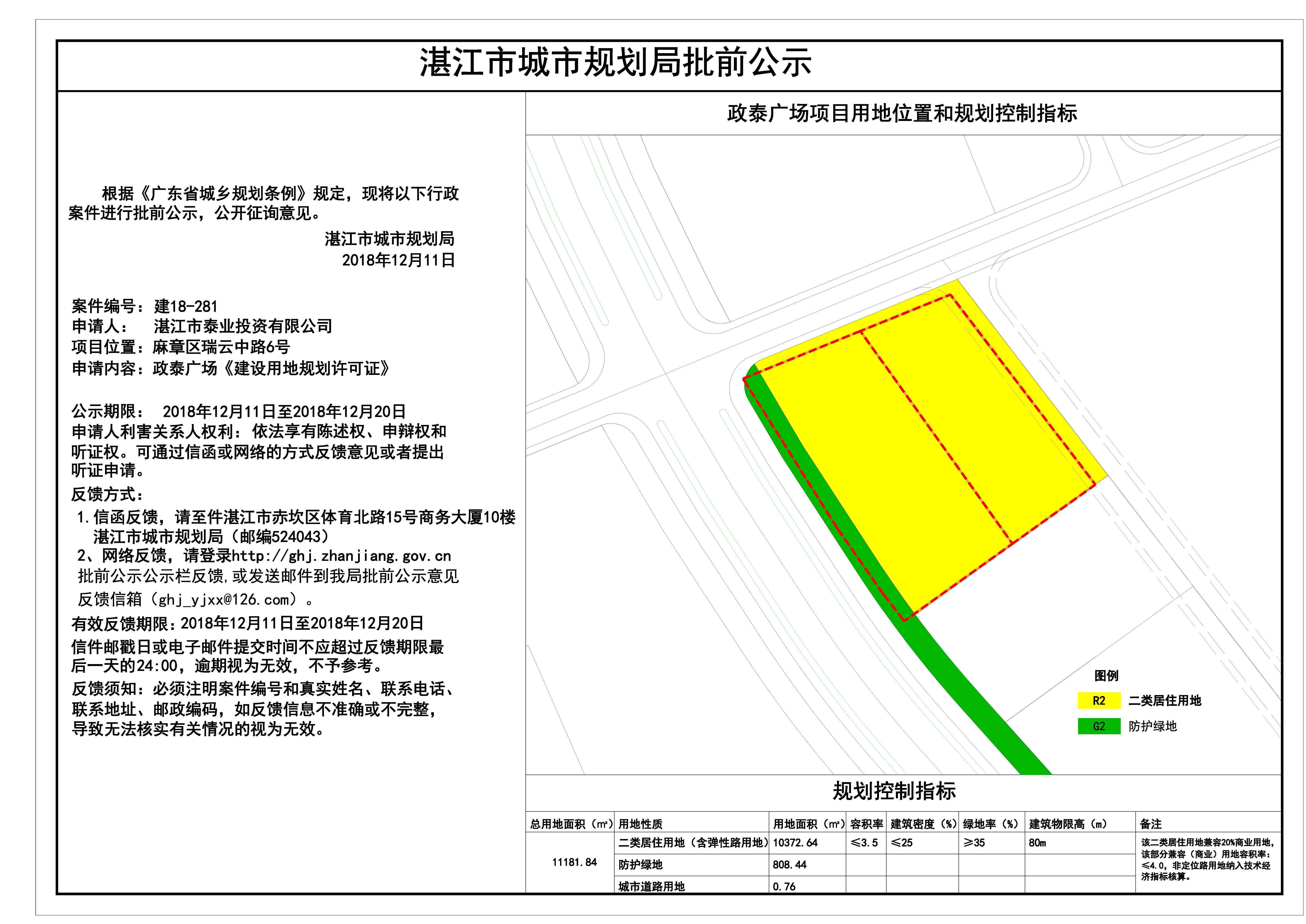 政泰广场《建设用地规划许可证》批前公示