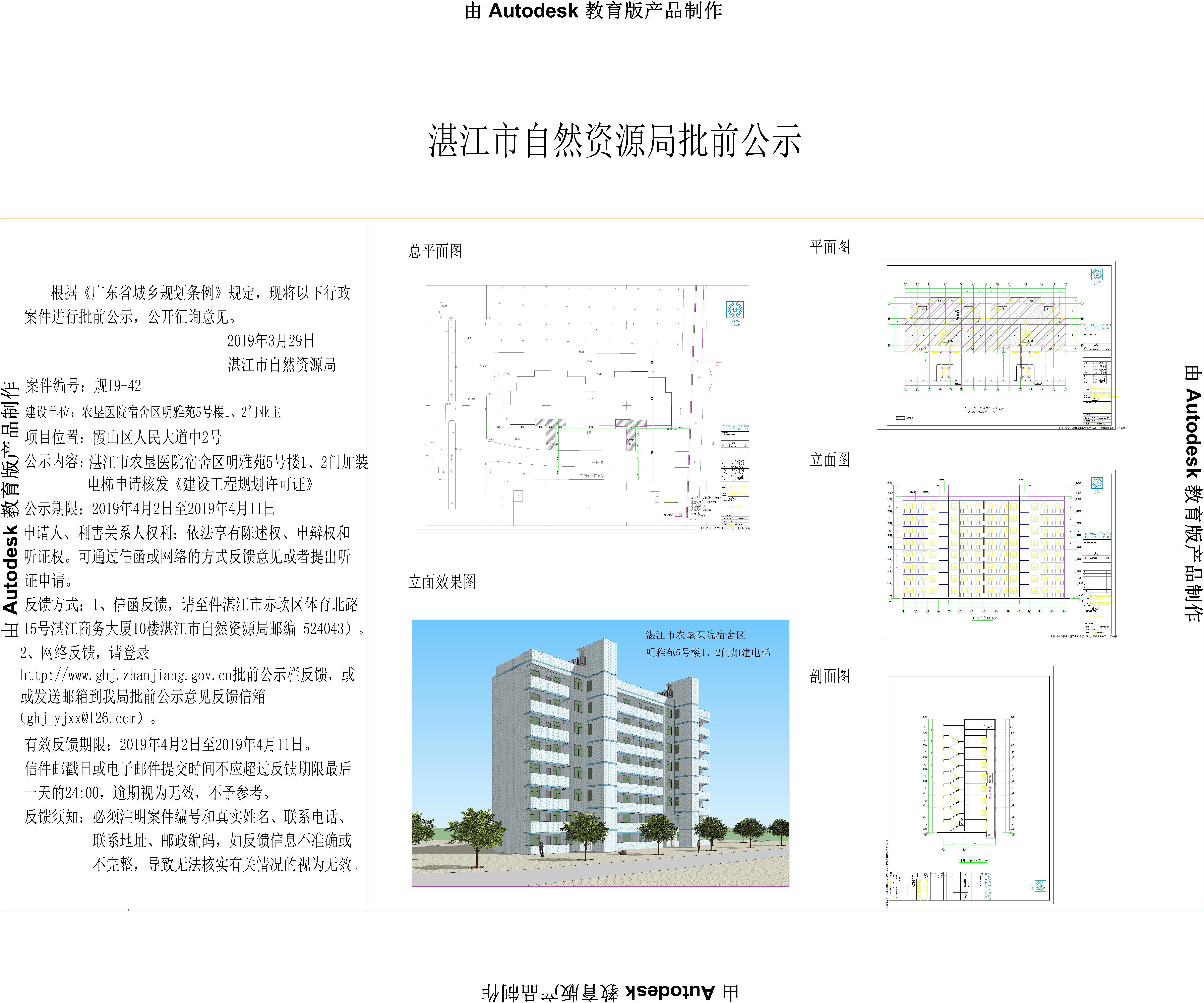 湛江市农垦医院宿舍区明雅苑5号楼1、2门加装电梯申请核发《建设工程规划许可证》批前公示