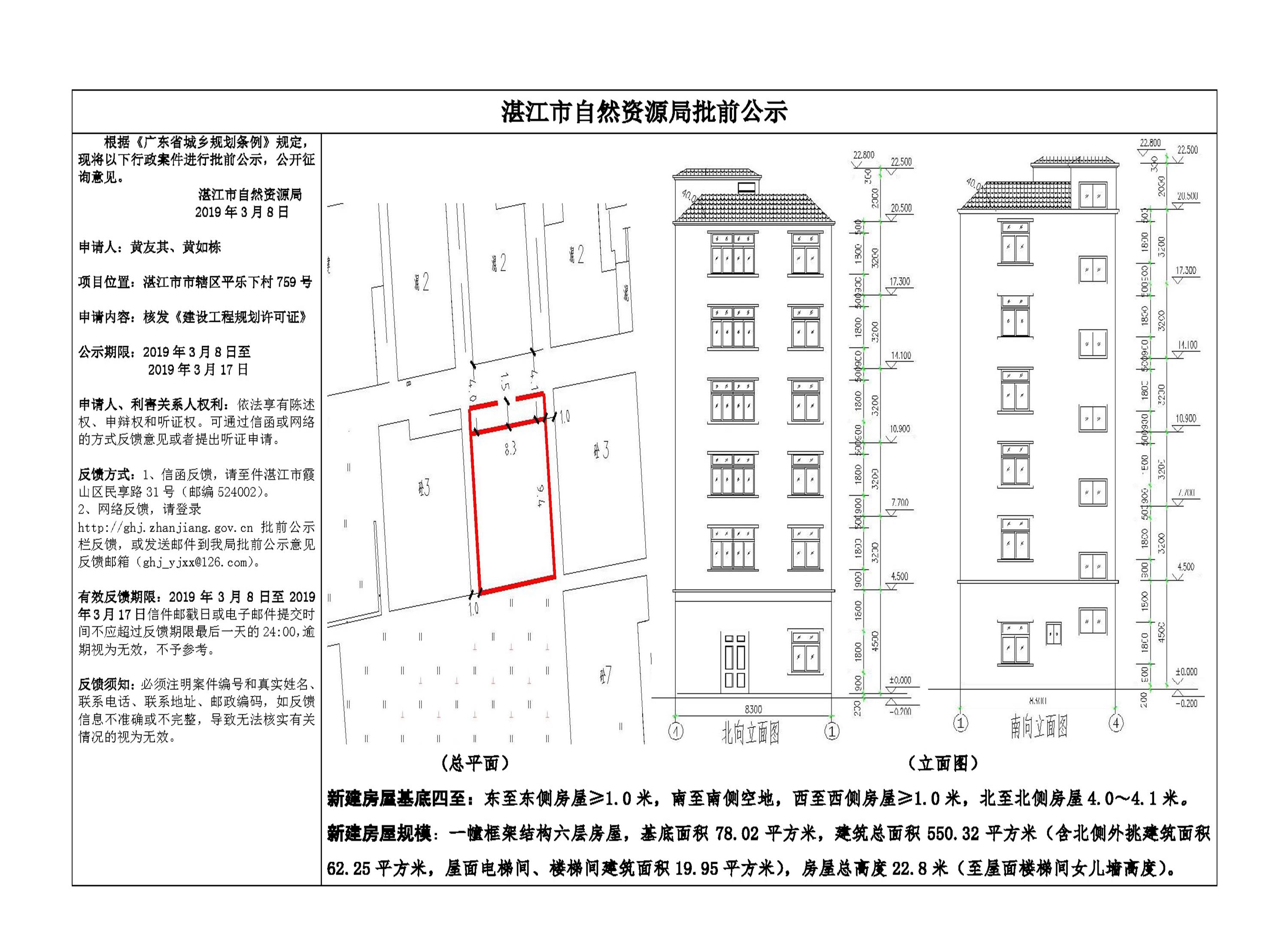 (黄友其、黄如栋)核发《建设工程规划许可证》批前公示