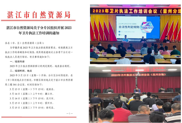 (二)坚持关键岗位重点学,提升执法人员素质。围绕行政执法人员这一关键岗位,认真落实持证上岗和资格管理制度,大力开展行政执法人员学法用法工作,先后组织4批次人员参加综合法律知识学习考试,申领、换领行政执法证。2020年以来,我局通过到各县(市、区)局巡回开展培训、在市局统一开展培训、邀请省测绘院专家来湛开展培训、组织参加省厅视频培训等形式,先后开展土地卫片执法业务培训共41场(次),提升全市自然资源系统工作人员及时掌握最新土地卫片执法工作政策和相关业务知识,熟练图斑研判和系统填报要求,增强行政执法能力和办案水平。