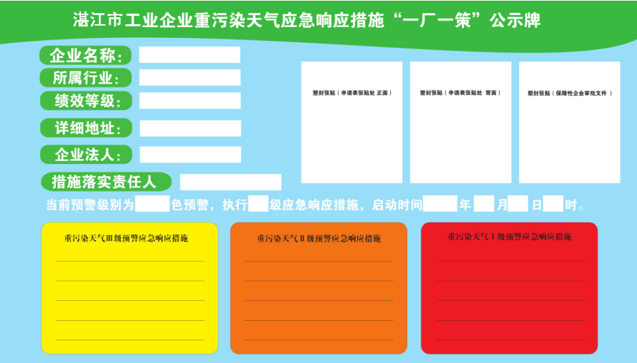 9.8 湛江市工业企业重污染天气应急响应措施“一厂一策”公示牌(样式)