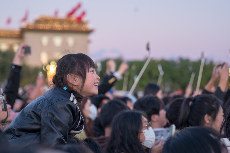 “我希望给孩子留下一次难忘的爱国主义教育,观看升旗仪式是我们这次到北京旅游最重要的行程。”和孩子一同挥舞着国旗的浙江游客张宁利说。