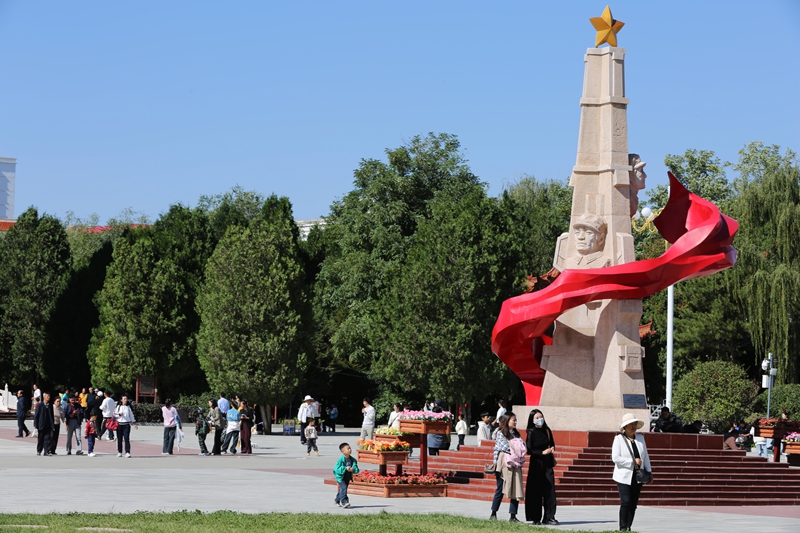 在河北西柏坡纪念馆广场,“我与祖国共成长”主题活动令众多游客驻足。假期来临,全国各地群众奔赴这个革命圣地,红色旅游掀起热潮。