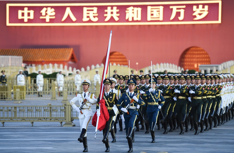 10月1日清晨,隆重的升国旗仪式在北京天安门广场举行,庆祝中华人民共和国成立75周年。新华社记者 陈钟昊 摄