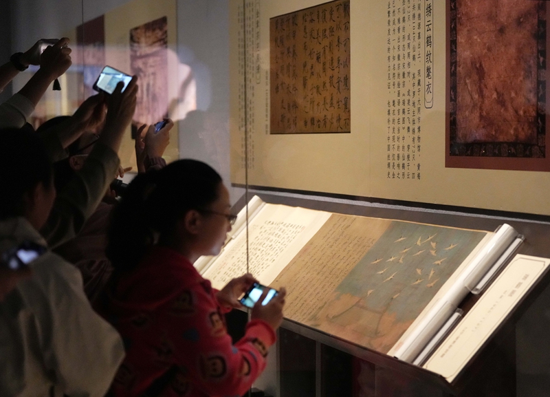 一群仙鹤翱翔空中,如云似雾,姿态百变,蔚为大观。国庆前夕,古画《瑞鹤图》在辽宁省博物馆“山河与共——辽金历史文化主题文物展”中一展真颜,吸引了不少外地观众专程奔赴沈阳,一睹国宝风采。
